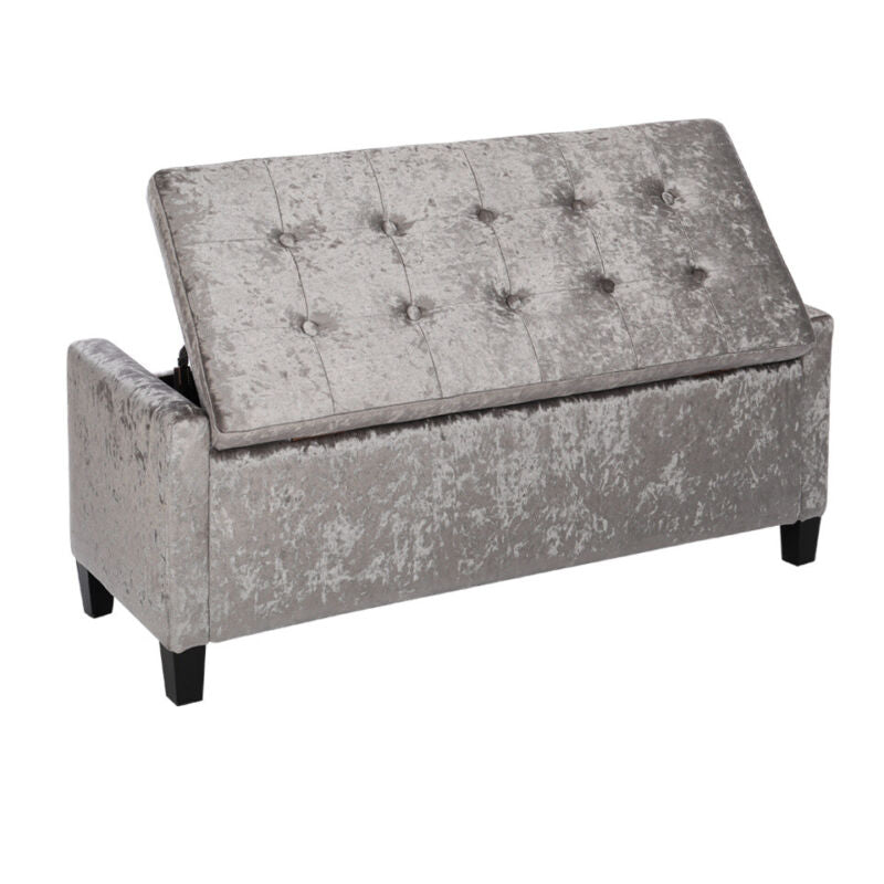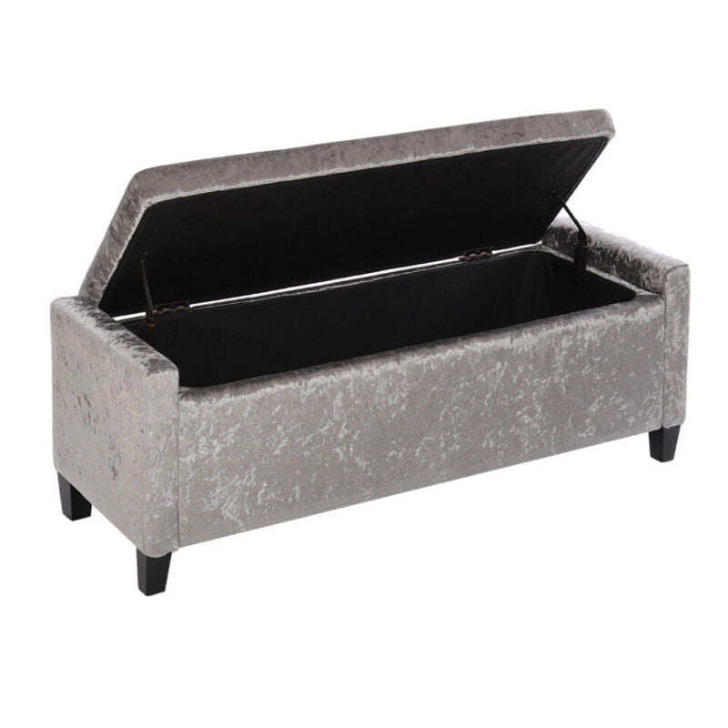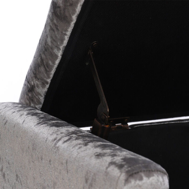 Glitter Grey Storage Ottoman Stool Bench Upholstered Chair Box Chest Side Seat