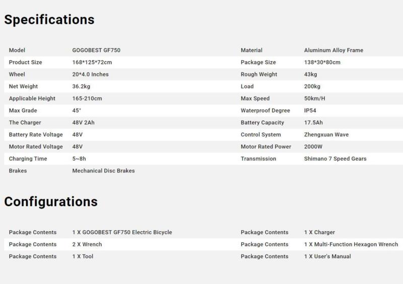 GOGOBEST GF750 Electric Bicycle E-bike Dual Motor 20inch 48V 17.5AH  BT