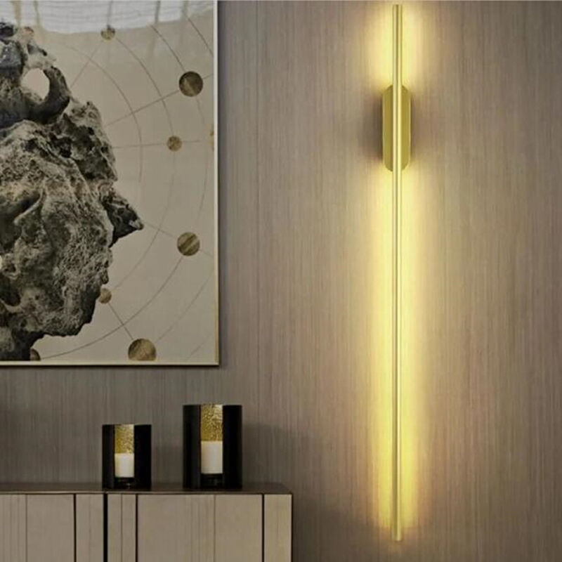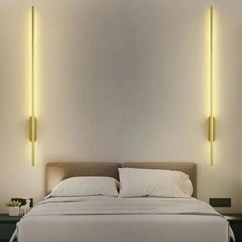 Gold Metal Long Strip LED Lights Linear Wall Mounted Sconce Lamp Bedroom Hallway