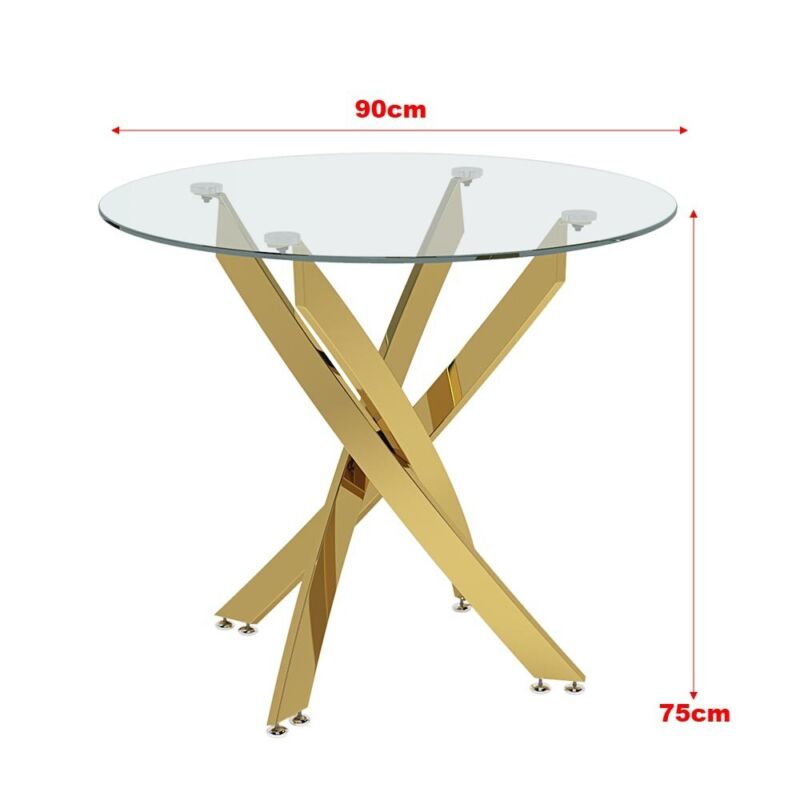 Gold Round Tempered Glass Kitchen Dining Table 2-4 Seater Reception Desk Stand