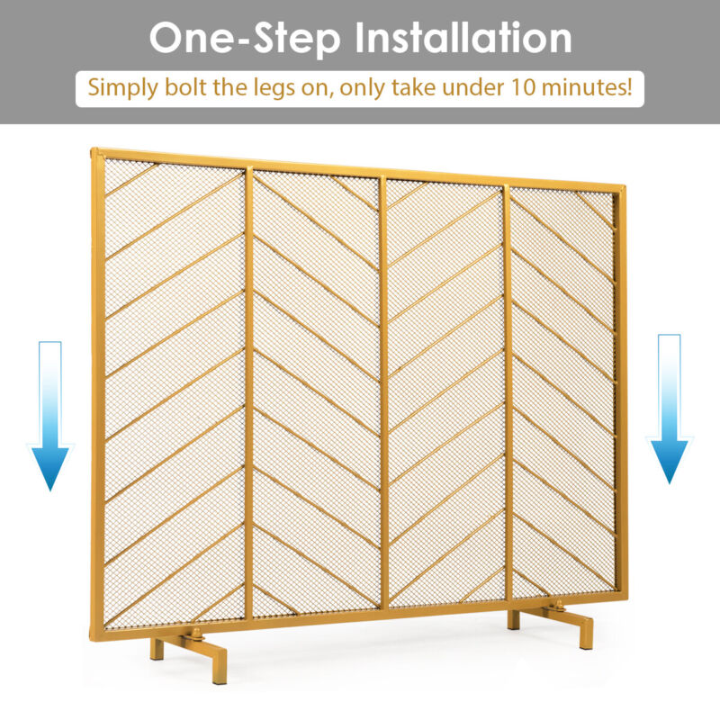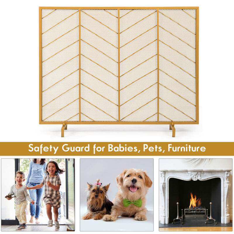 Gold Screen Spark Guard Kids Pet Fireplace Safety Protector W/ Stable Support