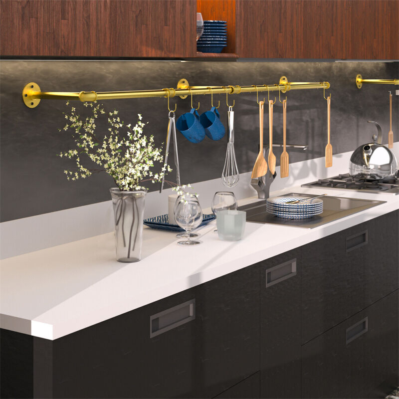 Gold Wall Mounted Clothes Rack Industrial Pipe Garment Rack Wedding Dress Shelf