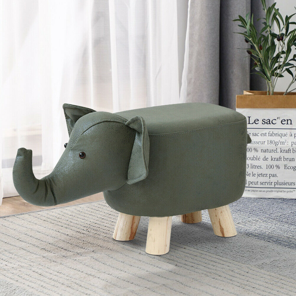 Green Elephant Stools Upholstered Seat Animal Footstools Ottomans PU Fabric Xmas