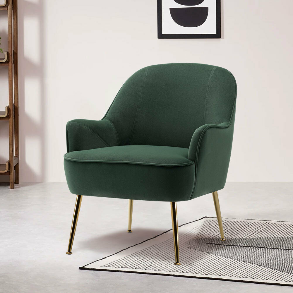 Green Velvet Armchair Wing Back Chair Tub Accent Fireside Small Sofa Metal Legs