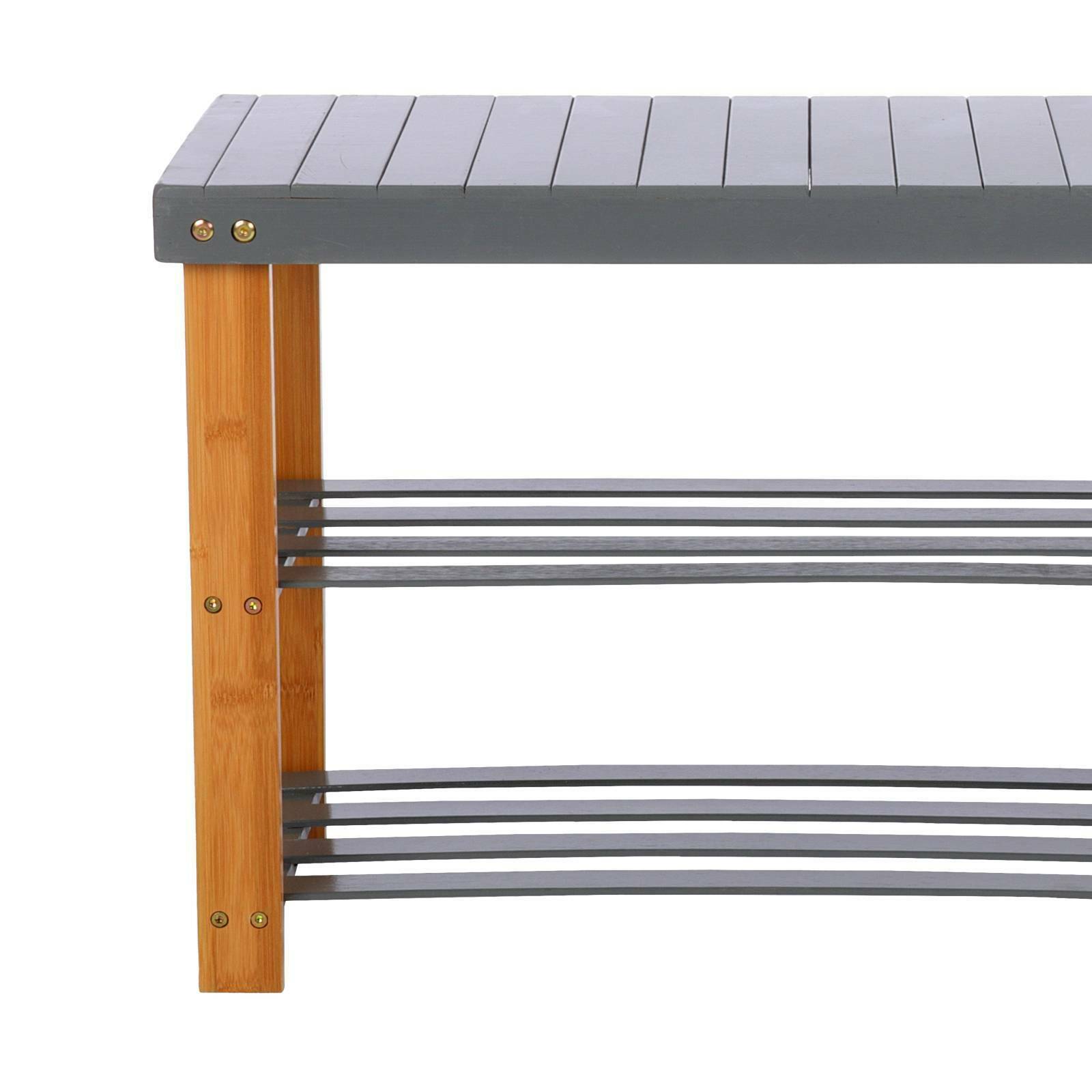 Grey 3Tier Bamboo Shoe Rack Hallway Storage Organiser Holder Stand Seating Bench