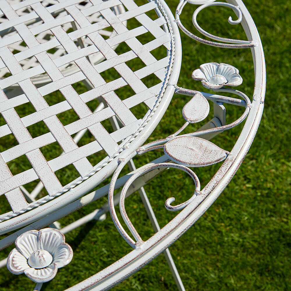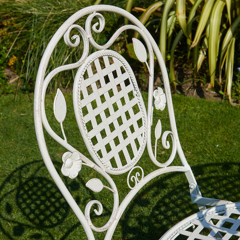 Grey Bistro Set Outdoor Patio Garden Furniture Table and 2 Chairs Metal Frame