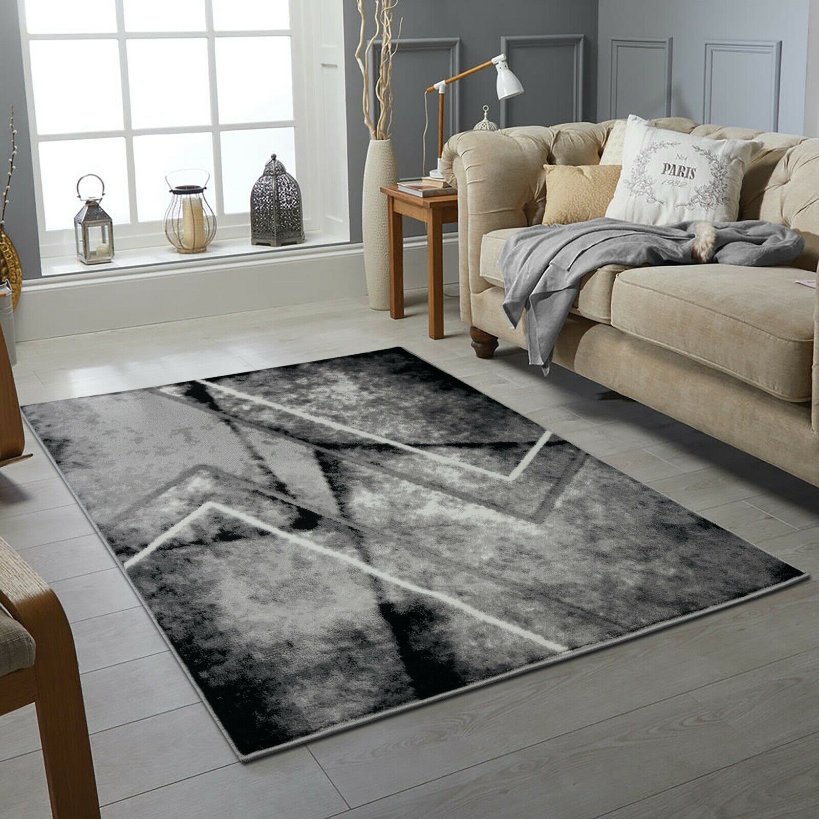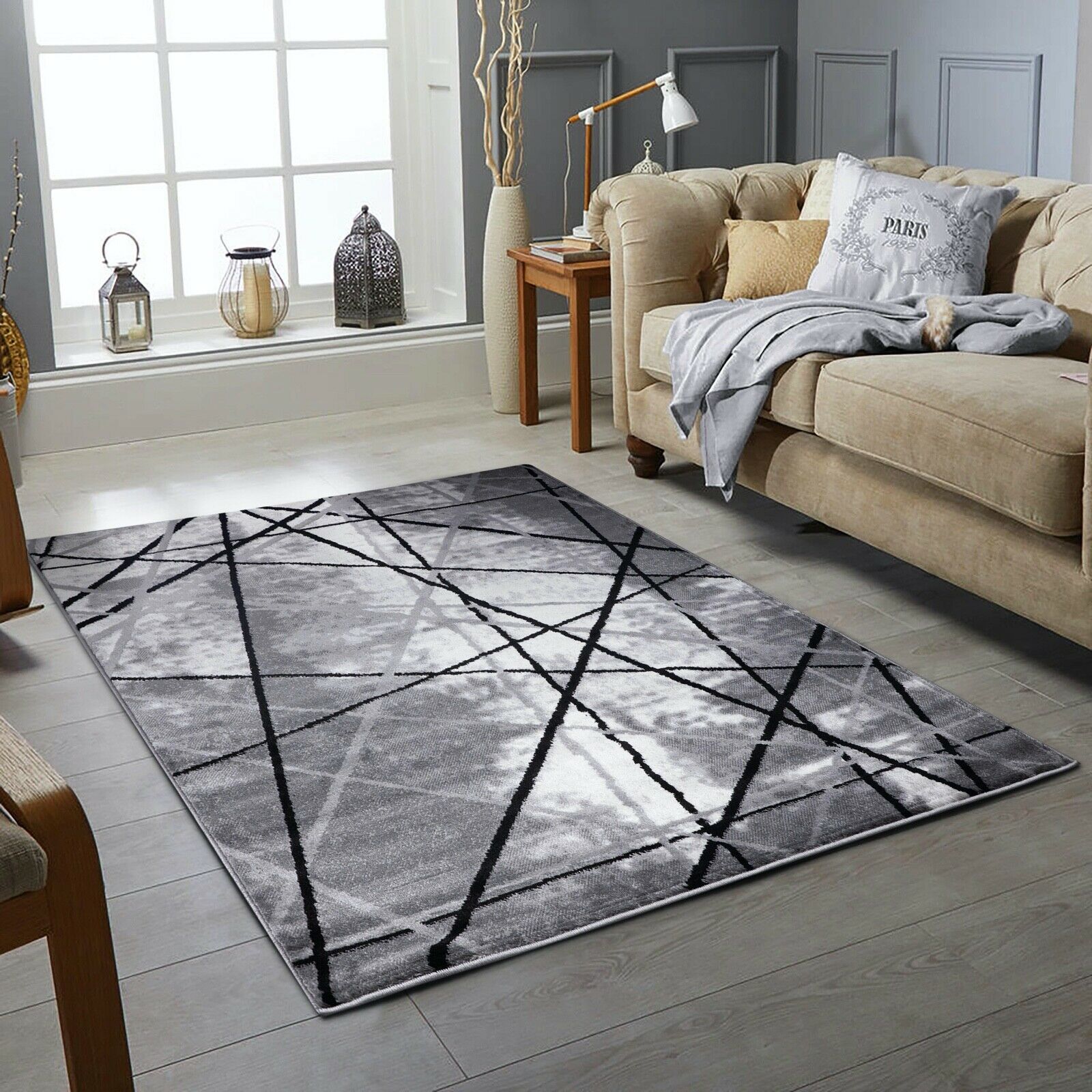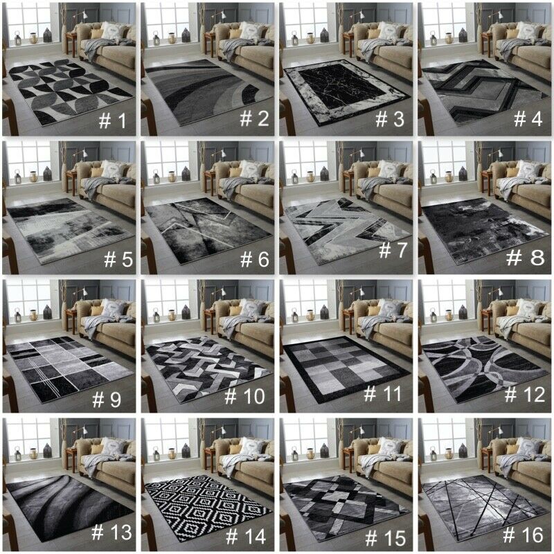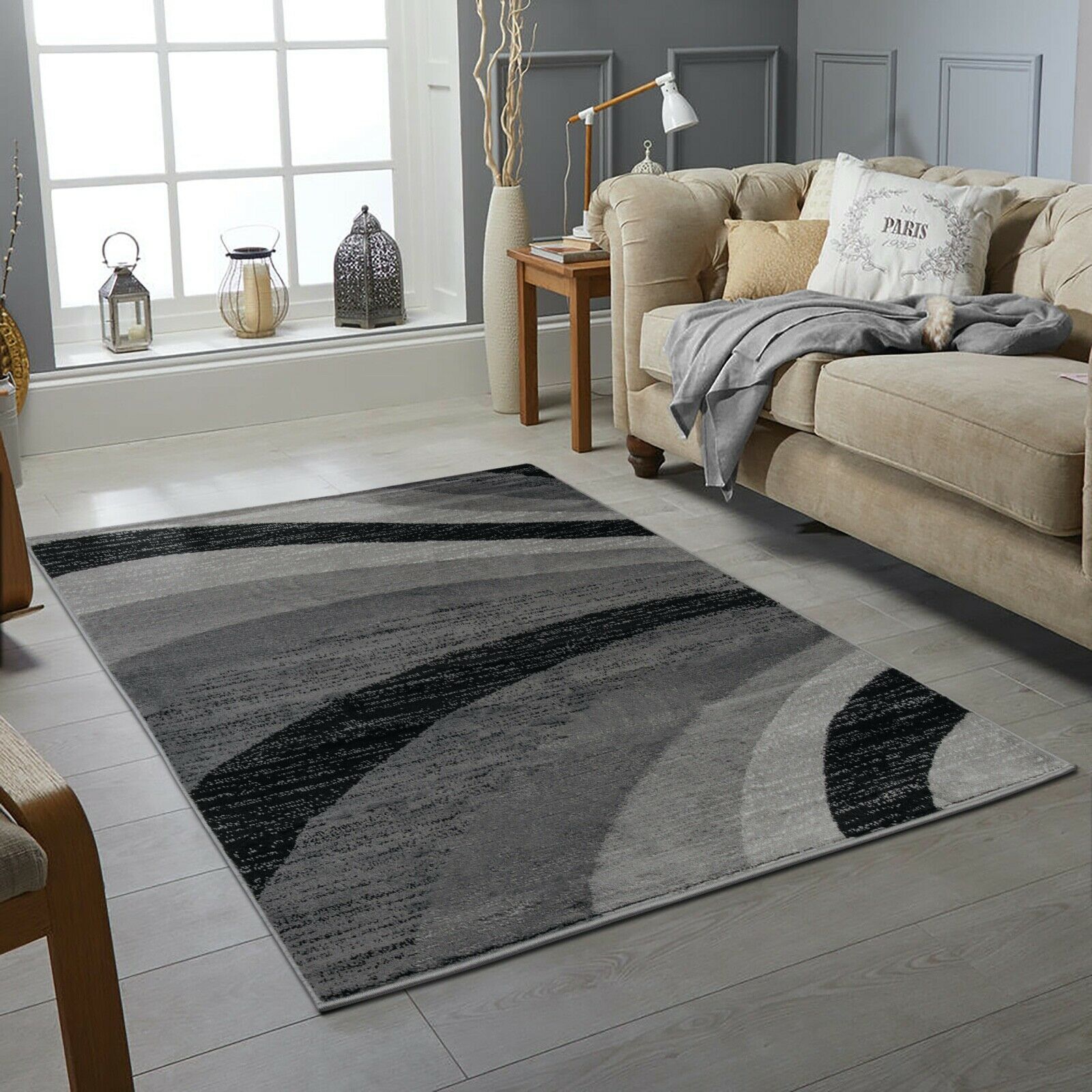 GREY BLACK MODERN DESIGN RUG SOFT LARGE LIVING ROOM FLOOR BEDROOM CARPET RUGS