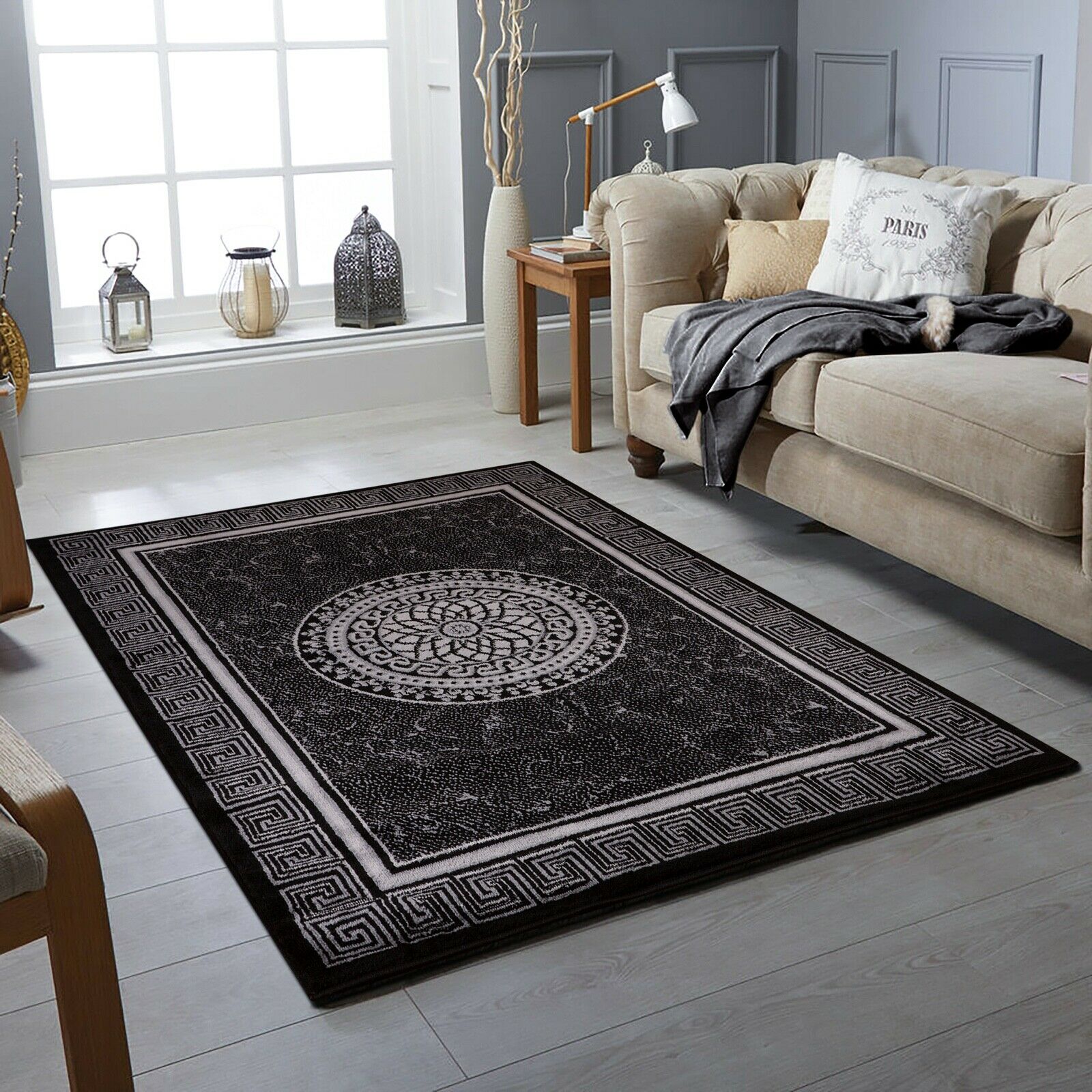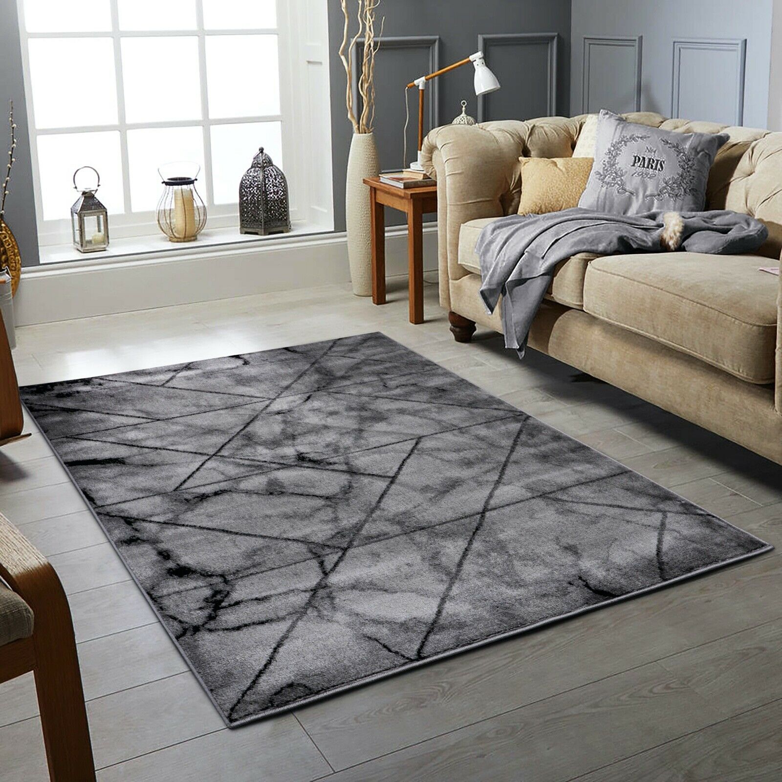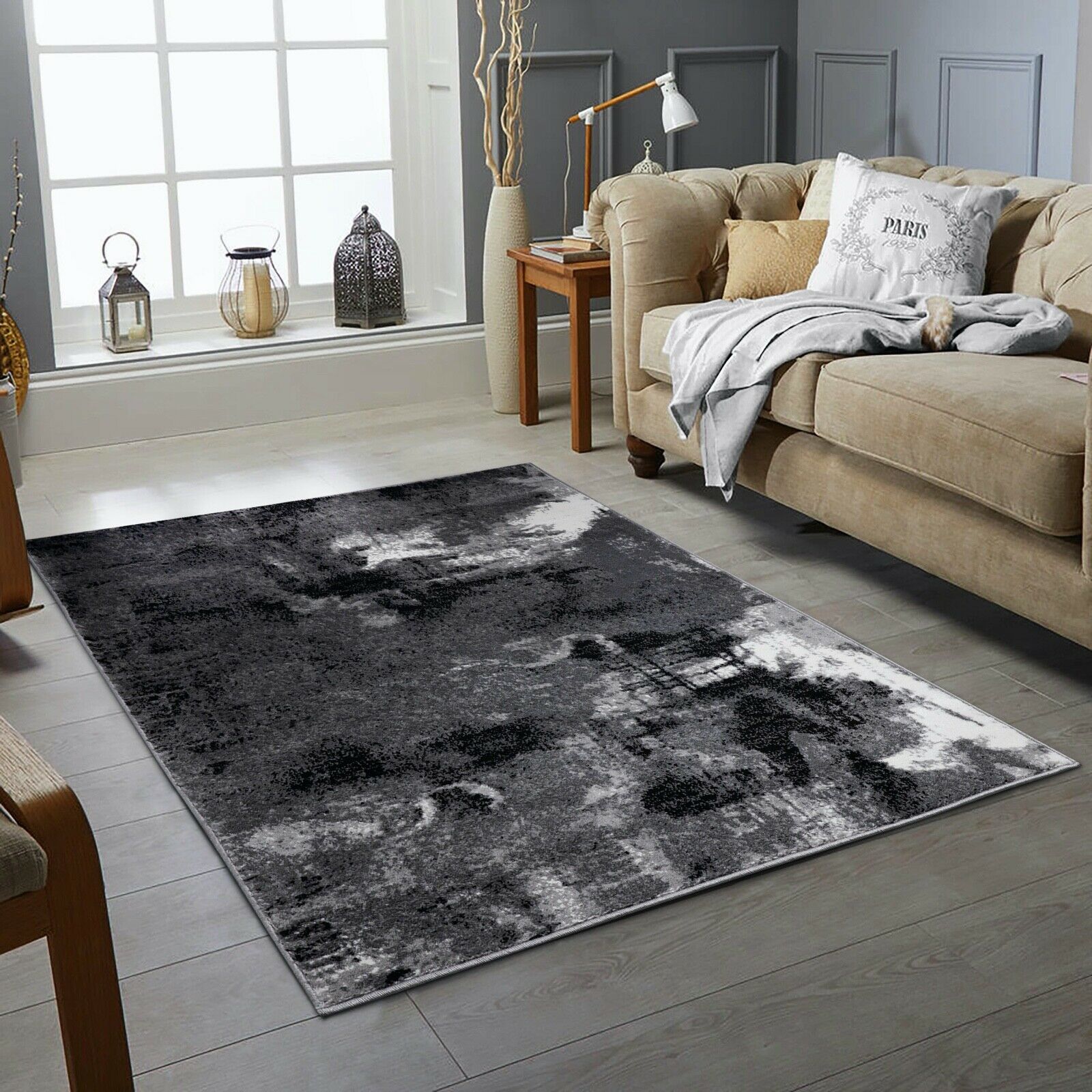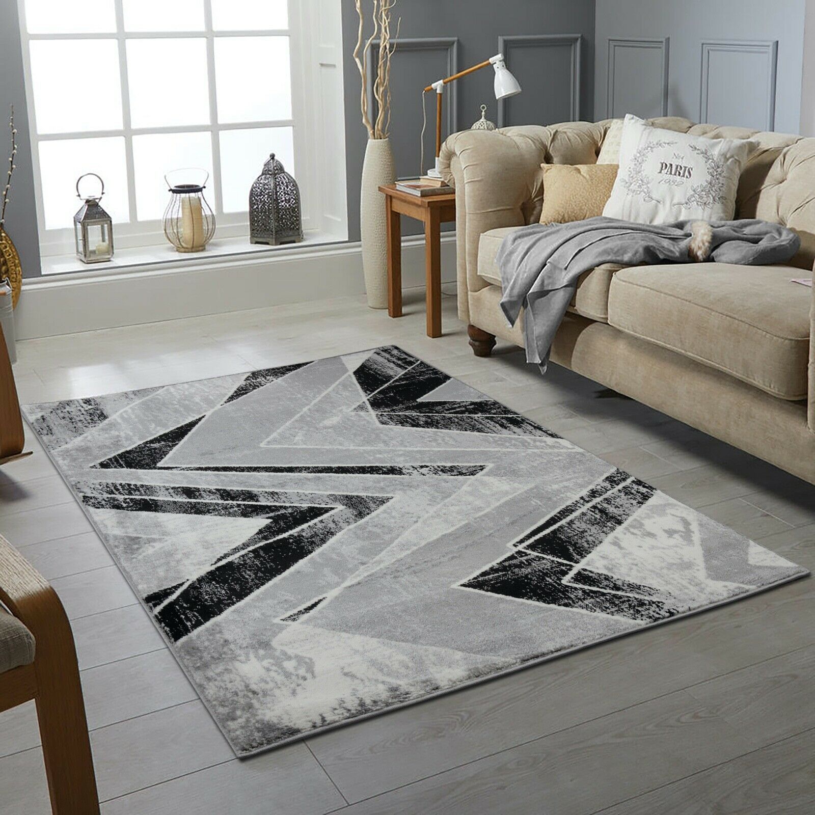 GREY BLACK MODERN DESIGN RUG SOFT LARGE LIVING ROOM FLOOR BEDROOM CARPET RUGS