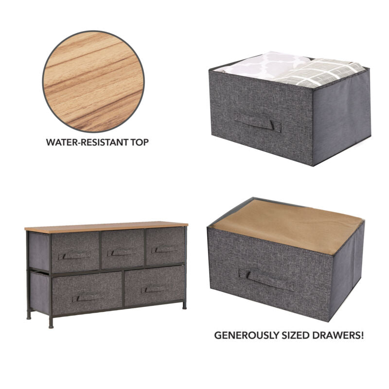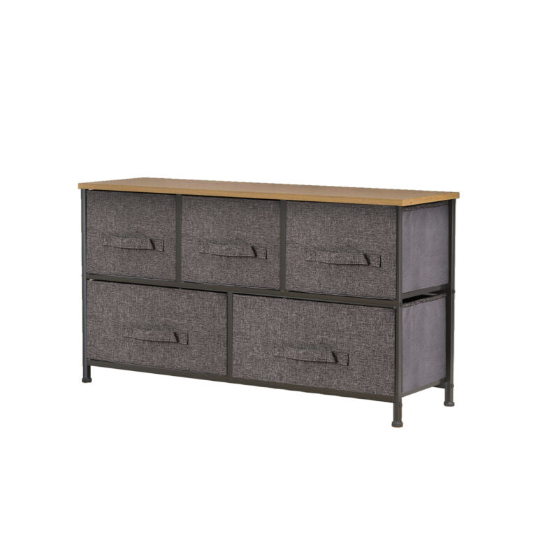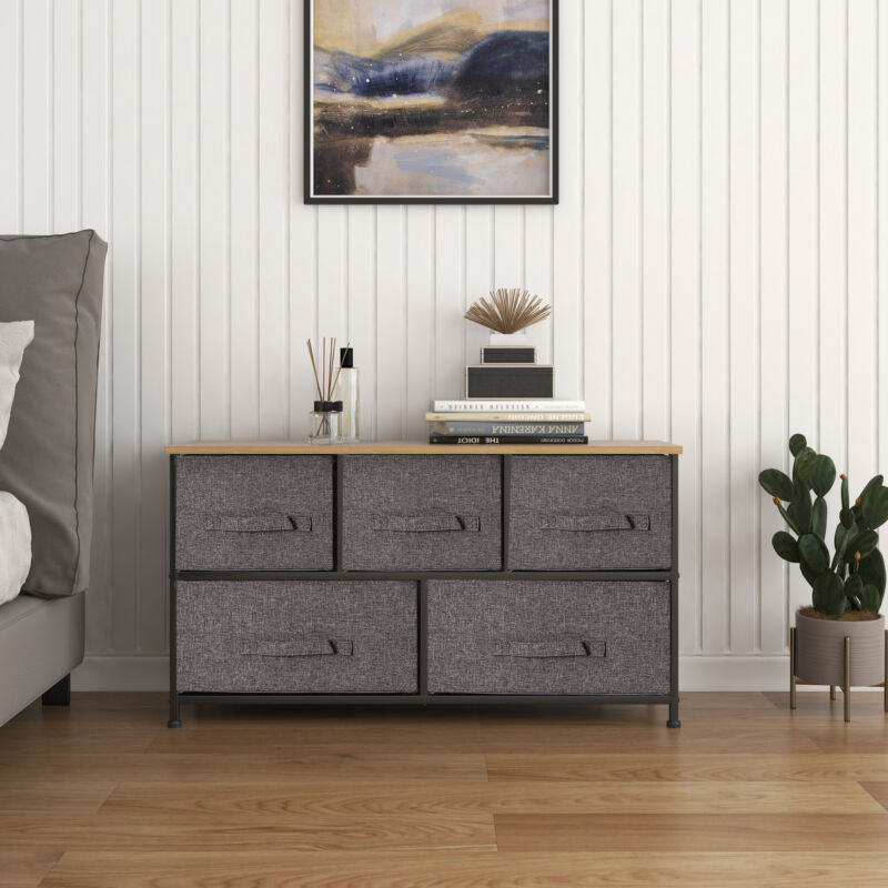 Grey Chest of 5 Drawers Fabric Storage Organizer Unit with Metal Frame Cabinet