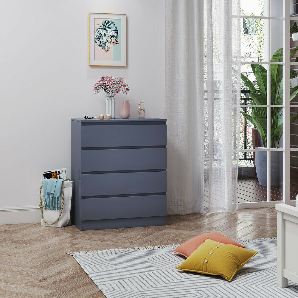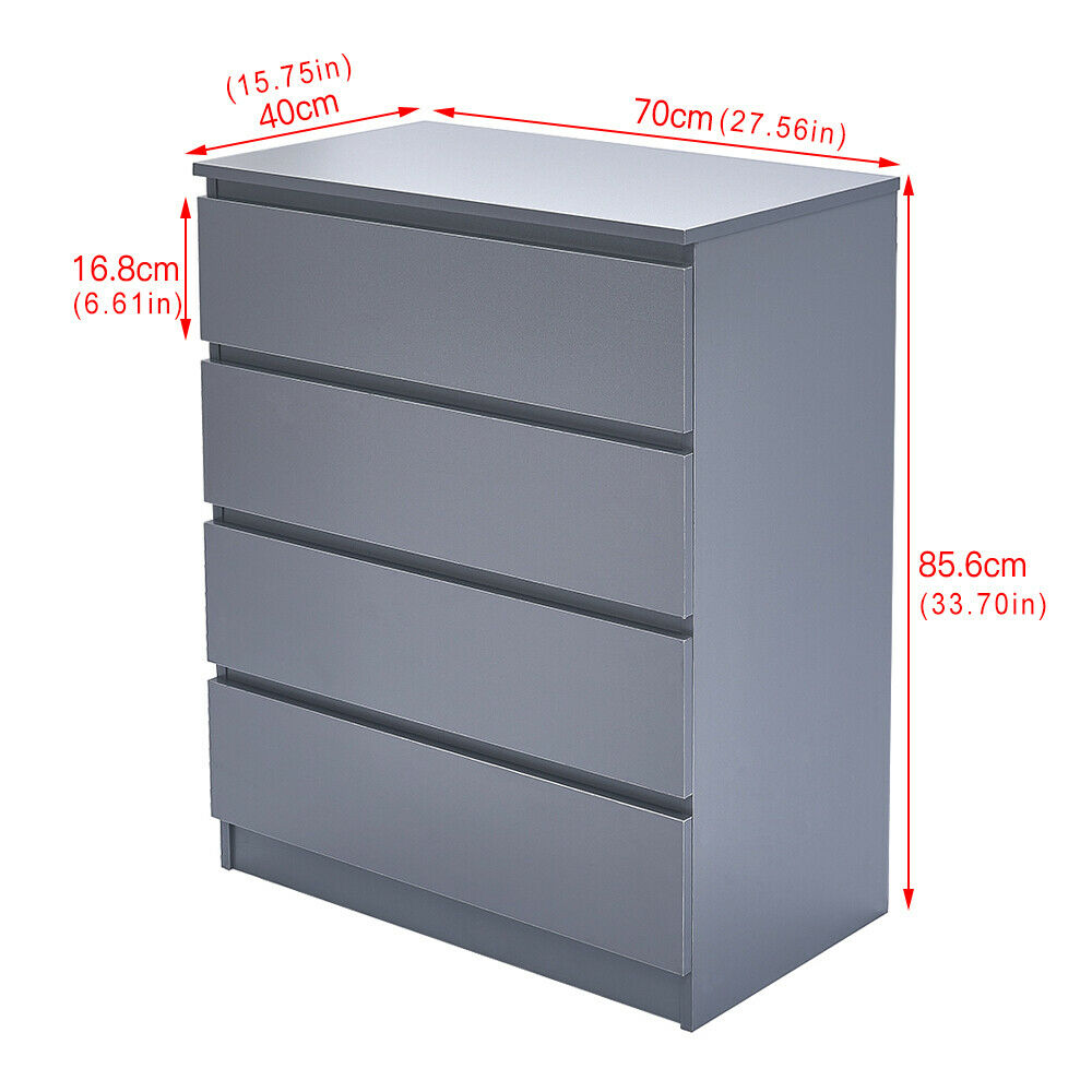 Grey Chest of Drawers Bedside Table Cabinet 4 Drawer Bedroom Storage Furniture