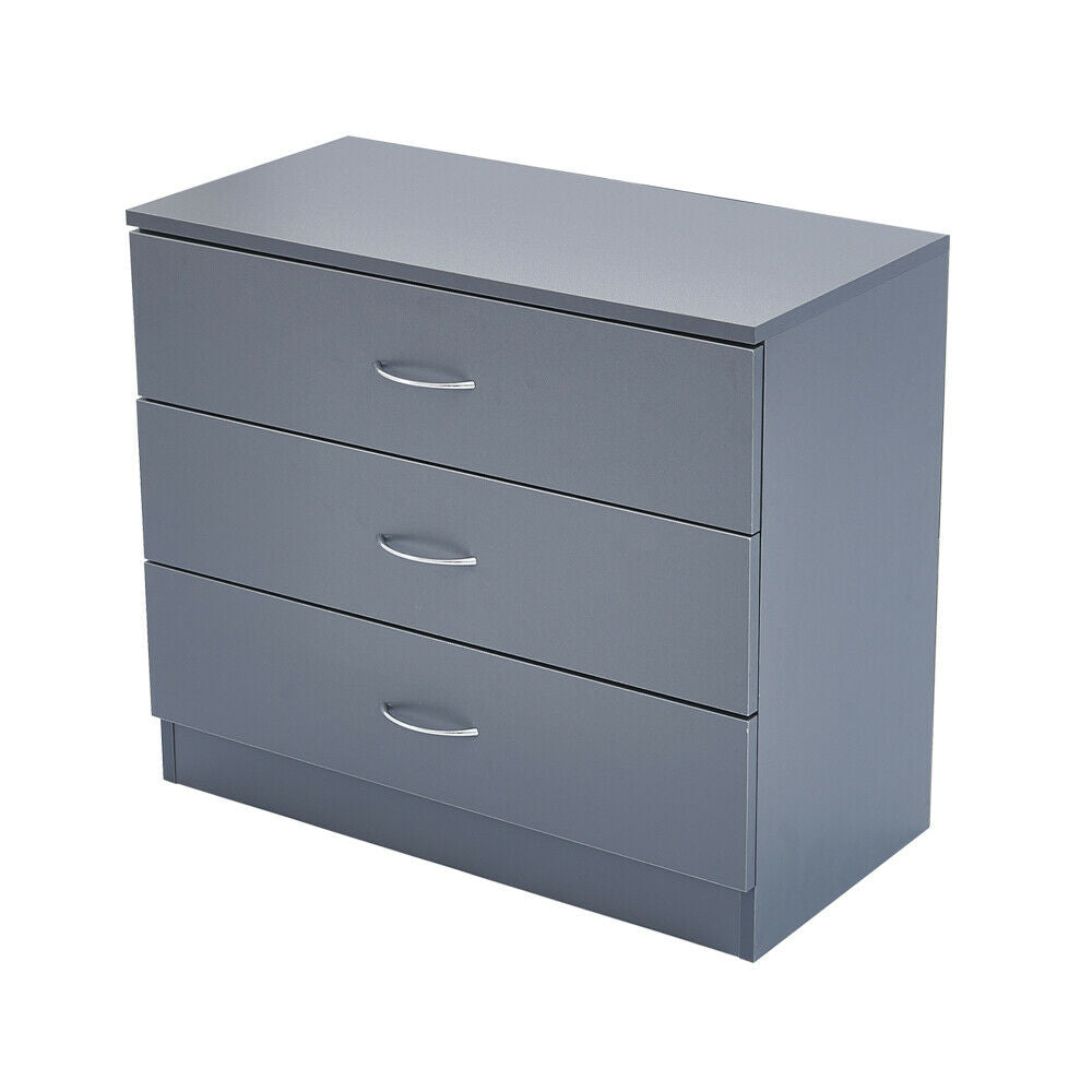 Grey Chest of Drawers Bedside Table Cabinet Nightstand 3 Drawer Bedroom Storage