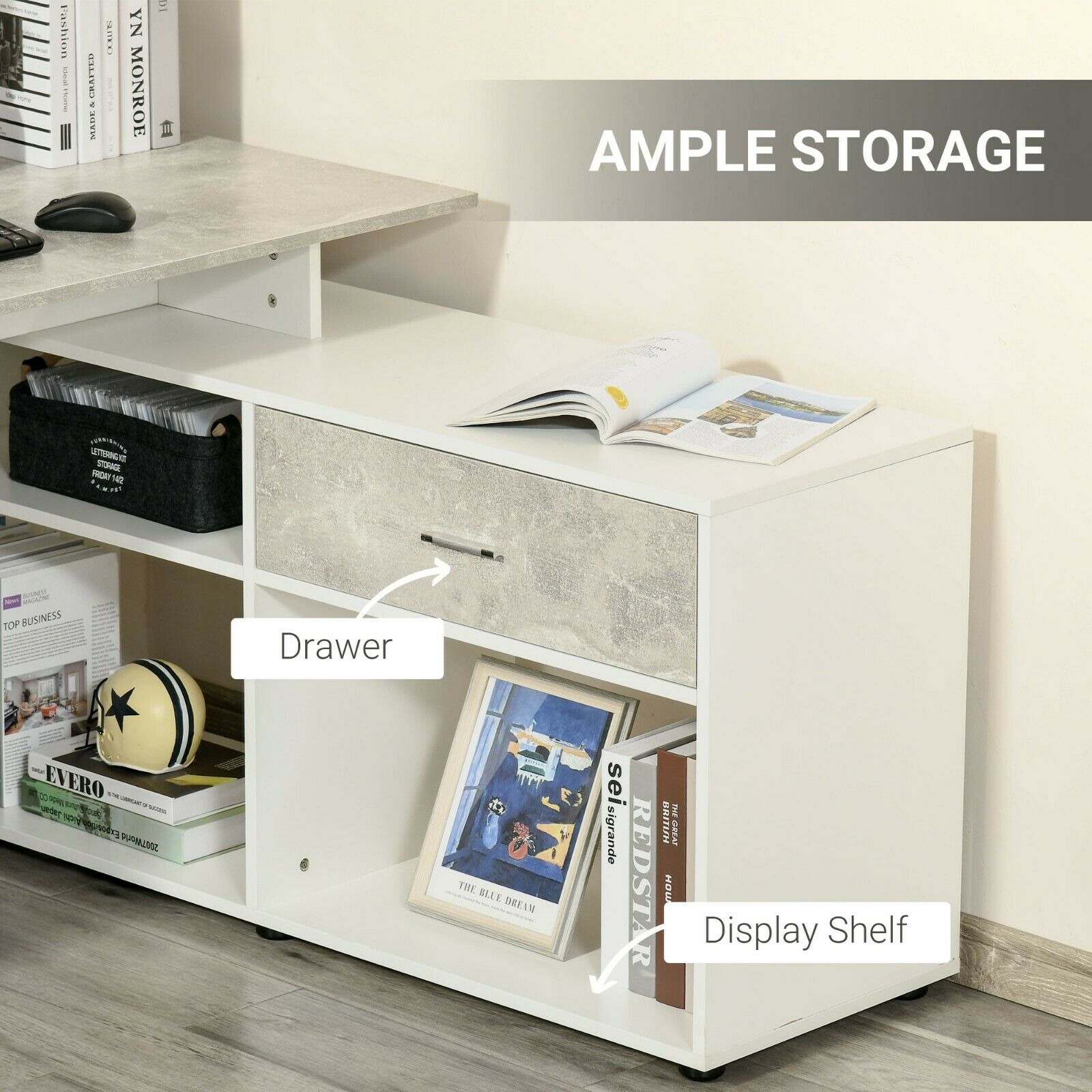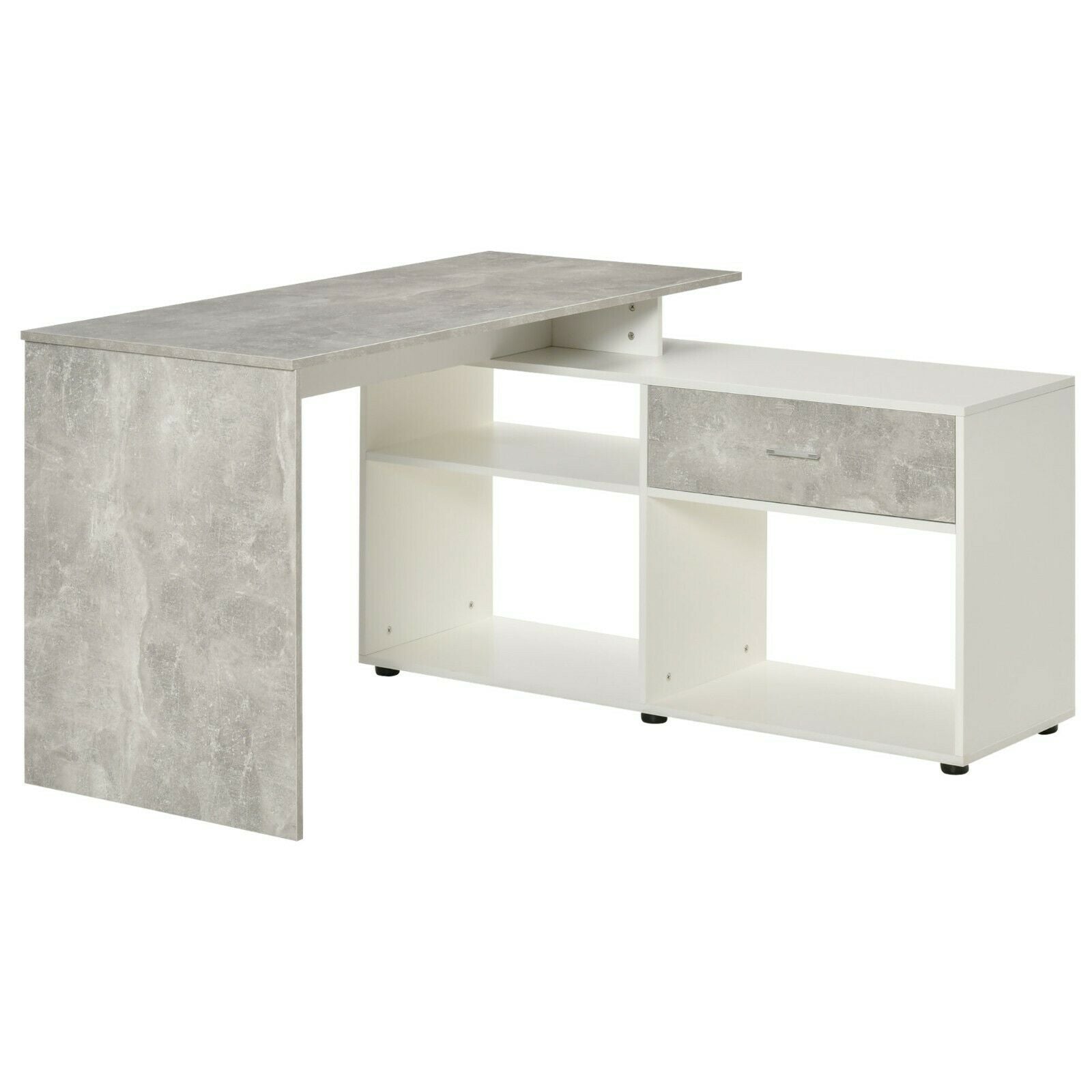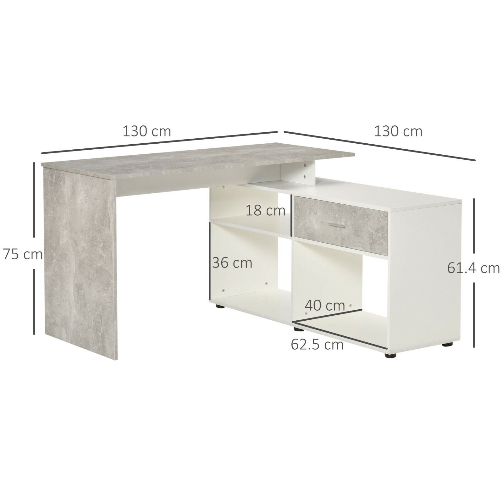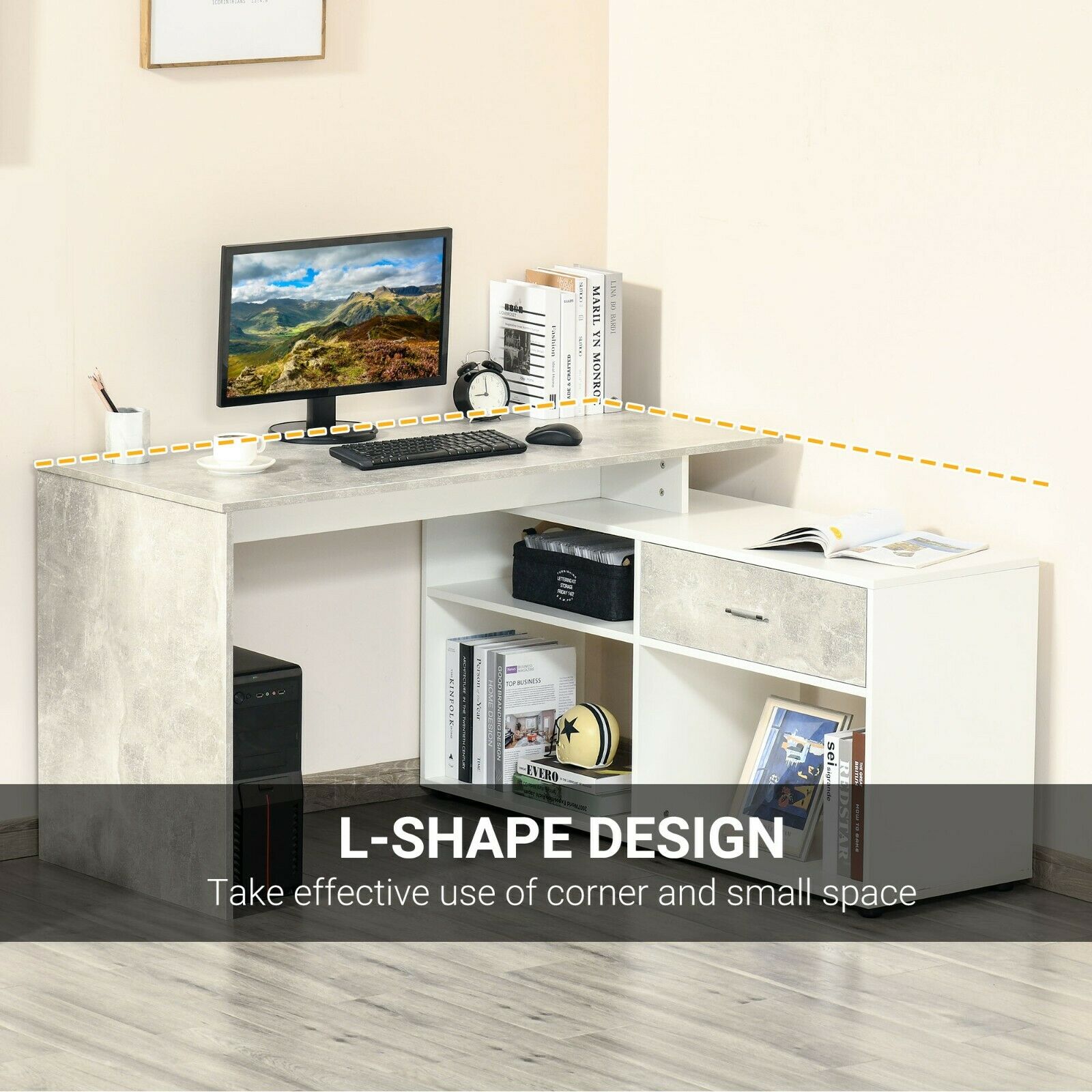 Grey Corner Desk L Shaped Storage Computer Table White Home Office Furniture