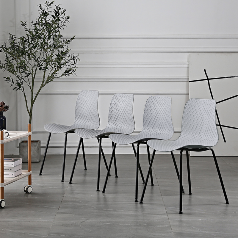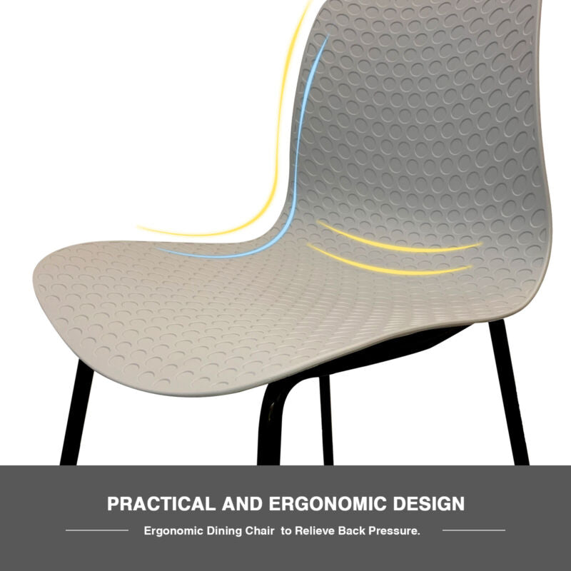 Grey Dining Chairs Set of 4 Retro Plastic Chairs Metal Legs Tulip Kitchen Chairs