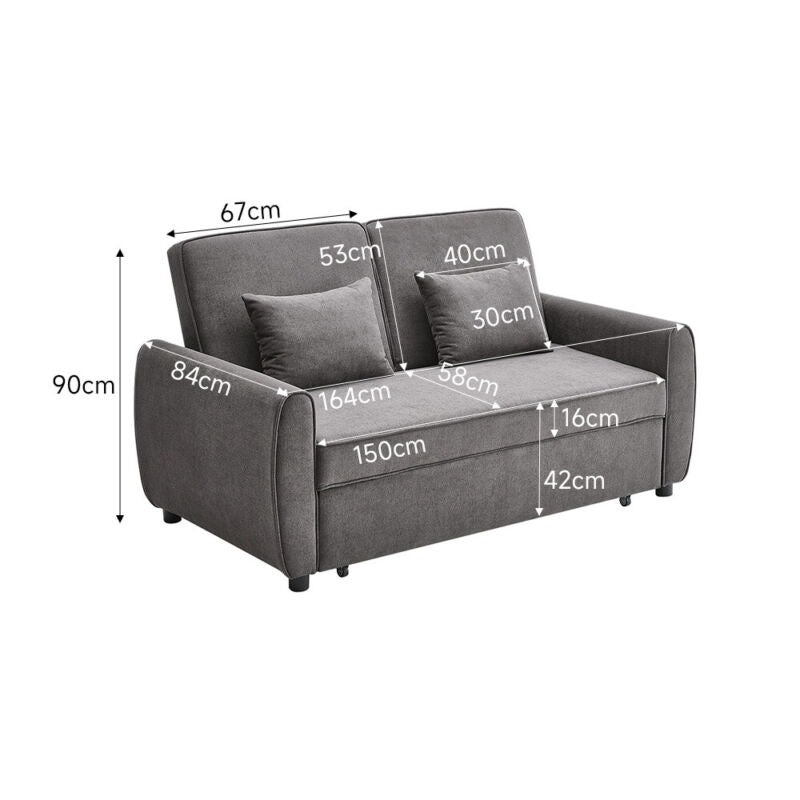 Grey Fabric Aramchair Sofa Bed 2 Seater Pull Out Double Sleeper Sofa Bed