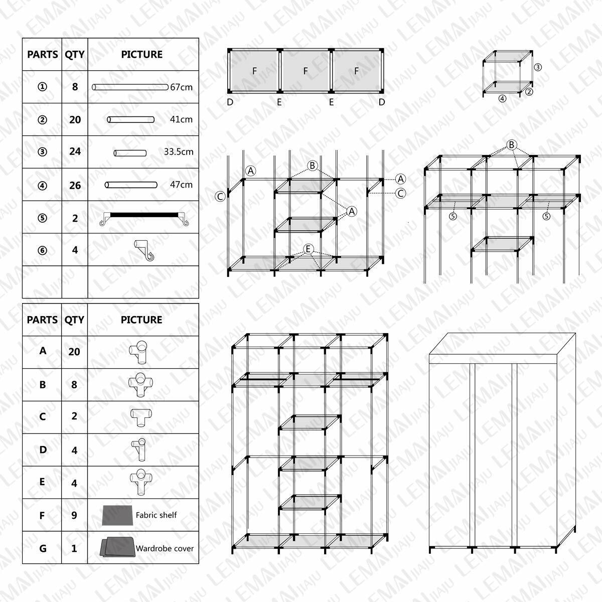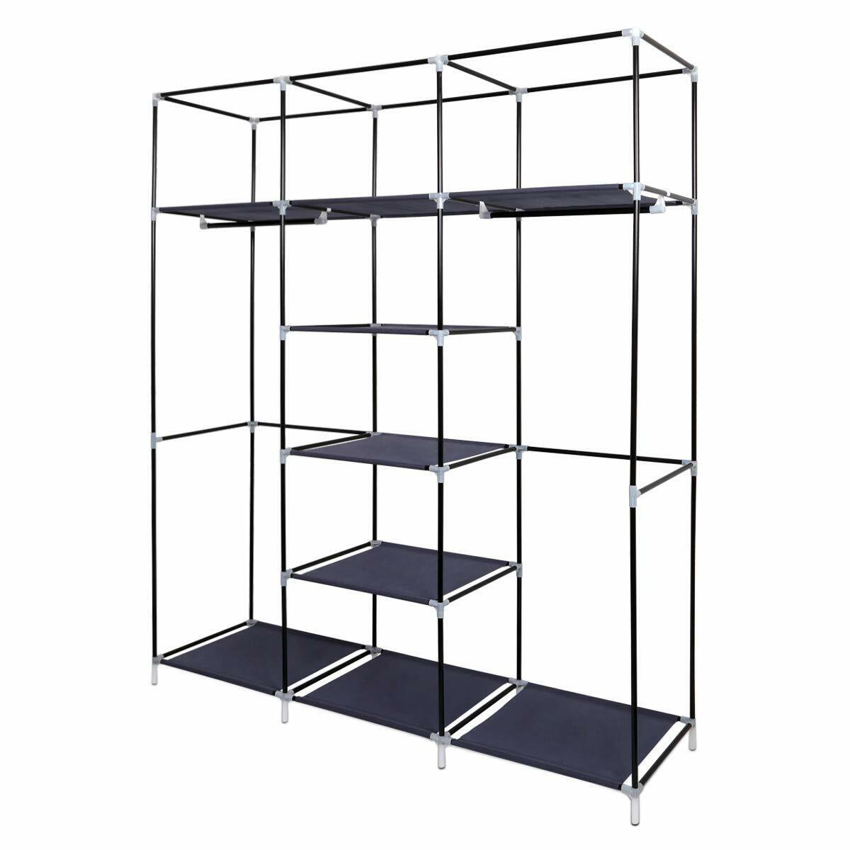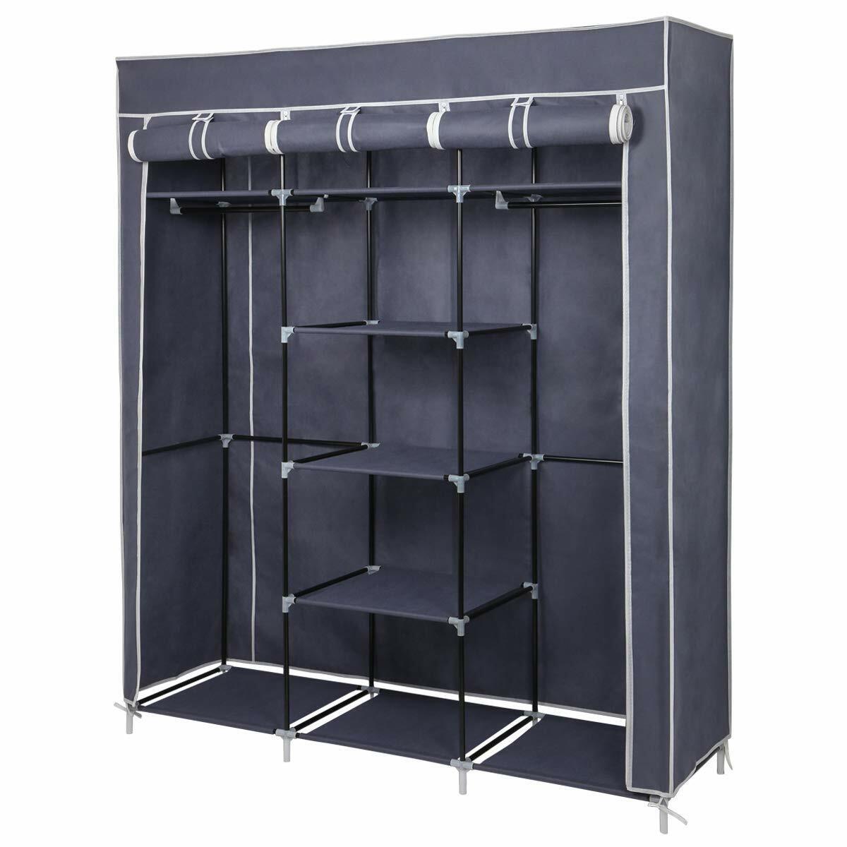Grey Fabric Canvas Wardrobe With Clothes Hanging Rail Shelves Storage Cupboard