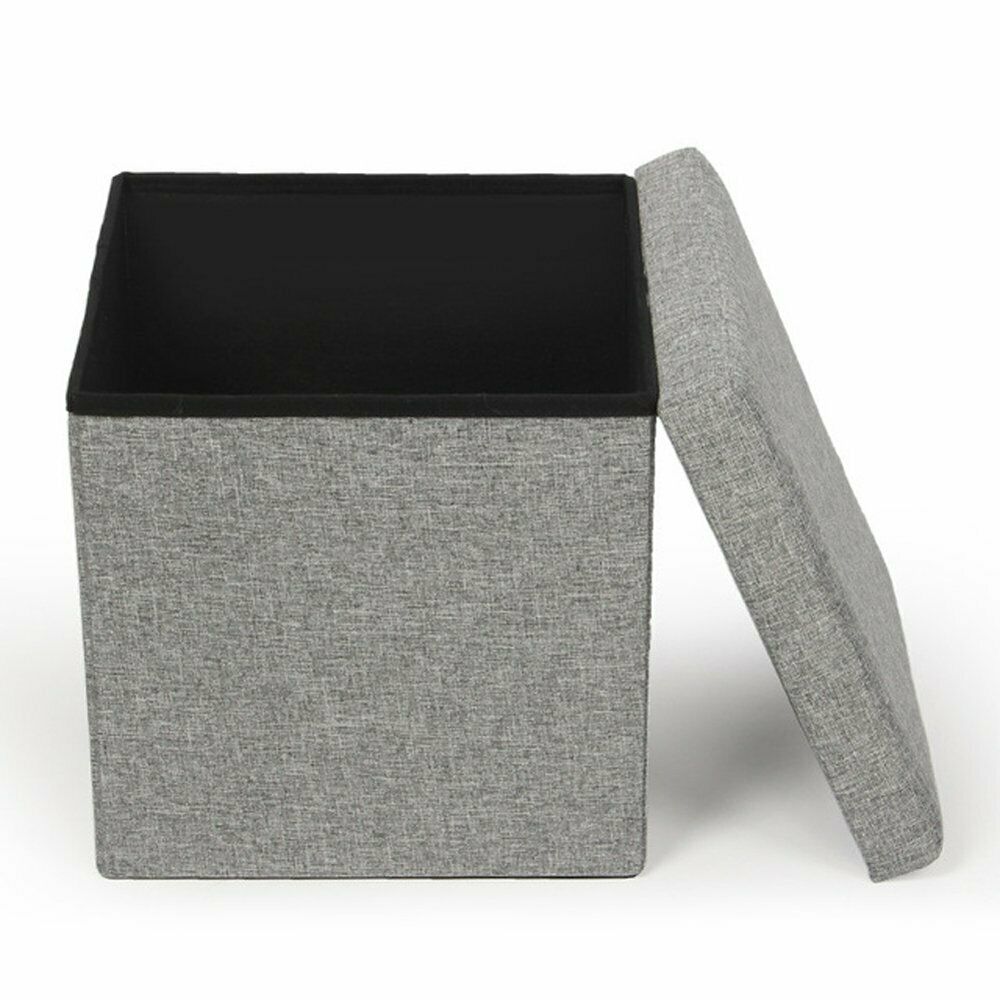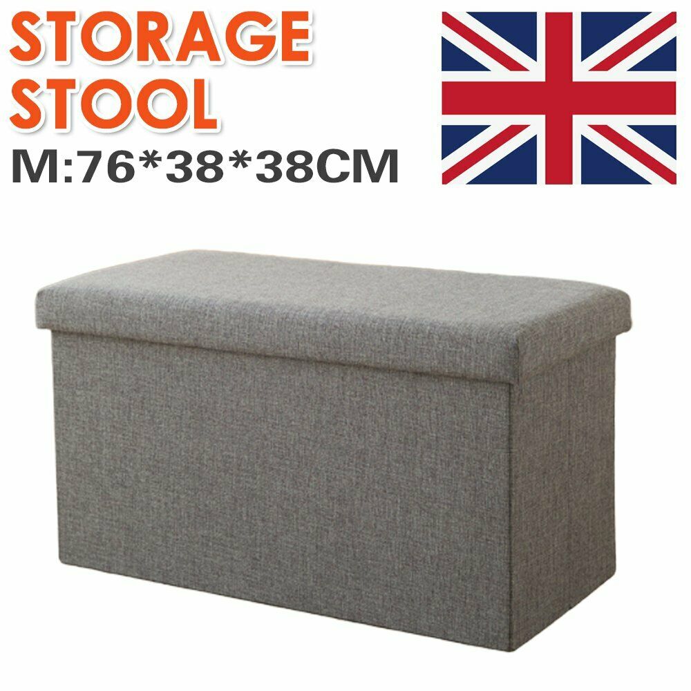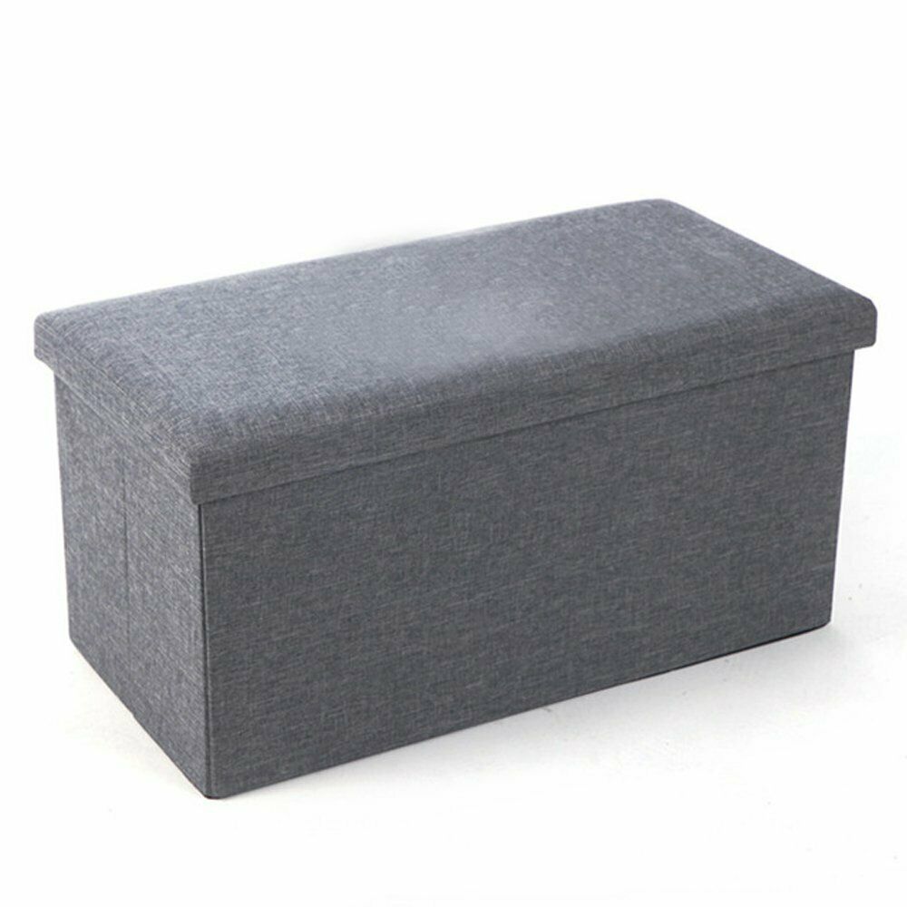 Grey Large Linen Folding Storage Ottoman Pouffe Seat Foot Stool Storage Box UK