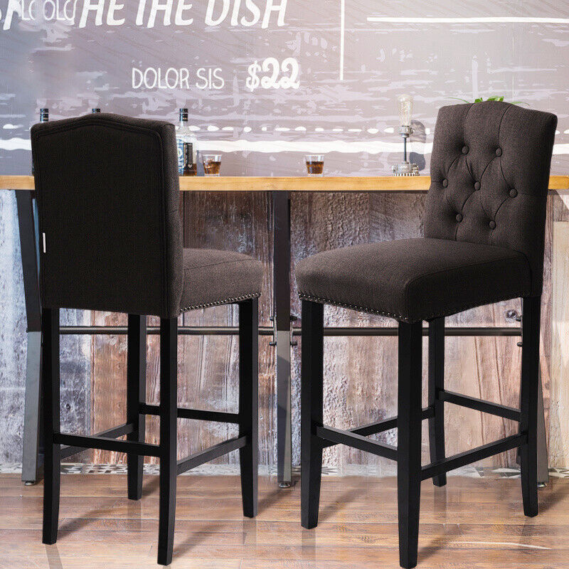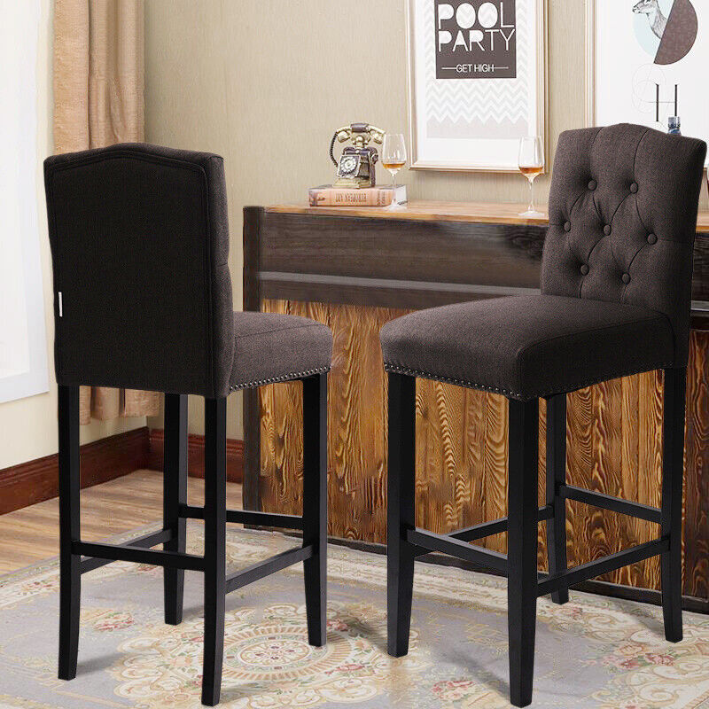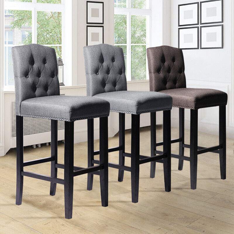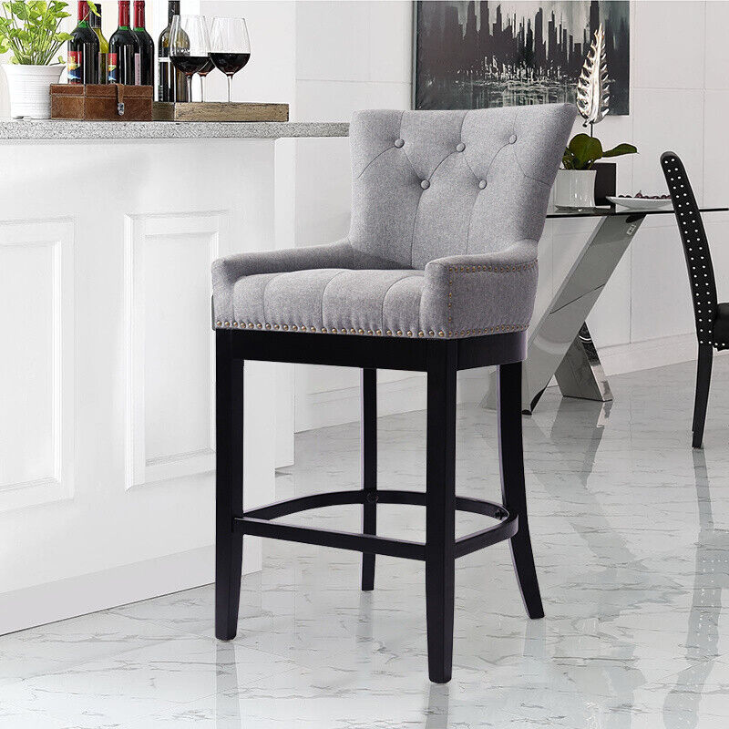 Grey Linen Fabric Breakfast Dining Chairs Bar Stools Wood Barstools Stool Chair