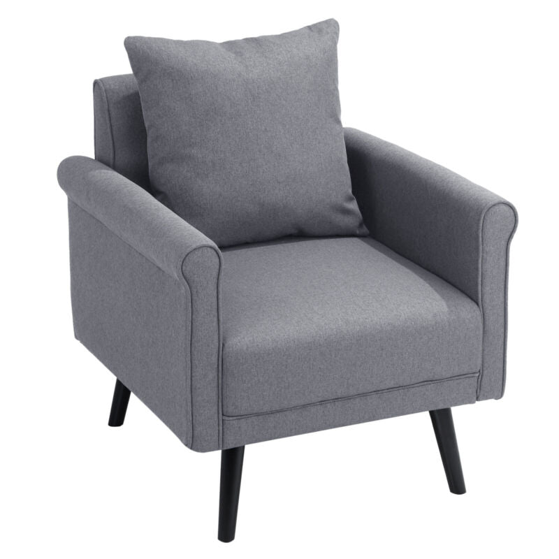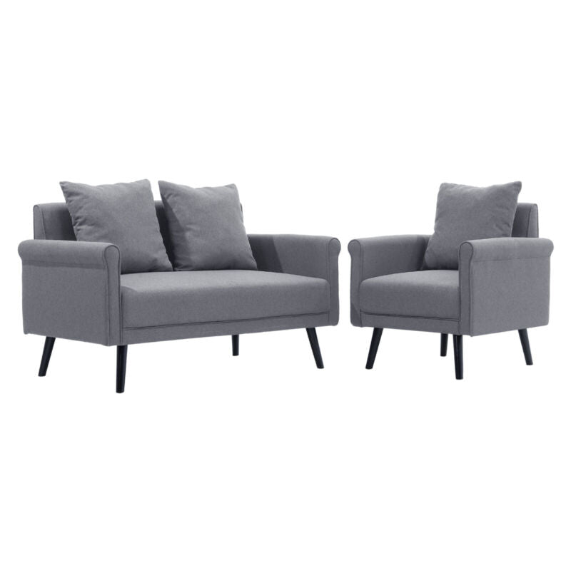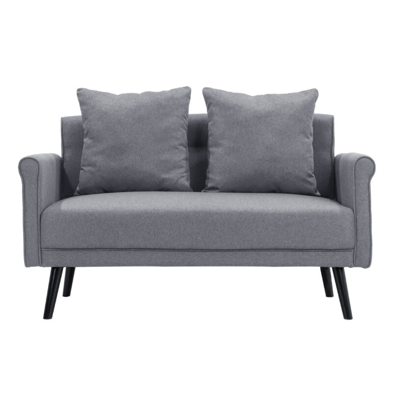 Grey Loveseat Single Sofa 2-Seater Fabric Linen Upholstered Lounge Chair Couch