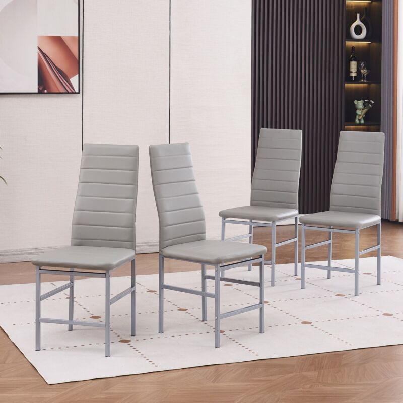 Grey Marble Tempered Glass Dining Table & 4x Grey Faux Leather Dining Chairs Set