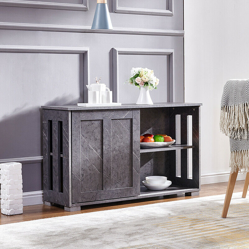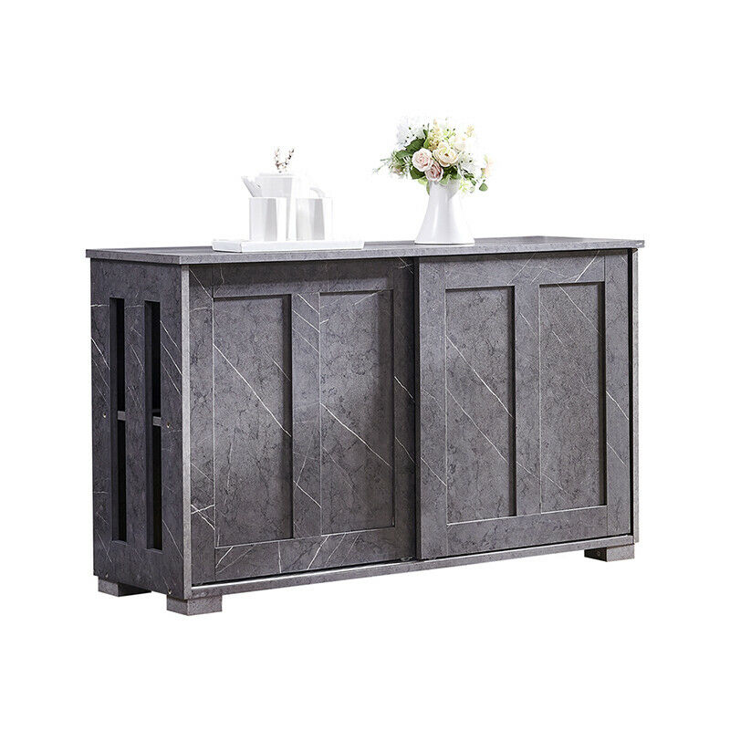 Grey Marble Vein 2 Sliding Door 2-Tier Shelves Sideboard Storage Cabinet Kitchen