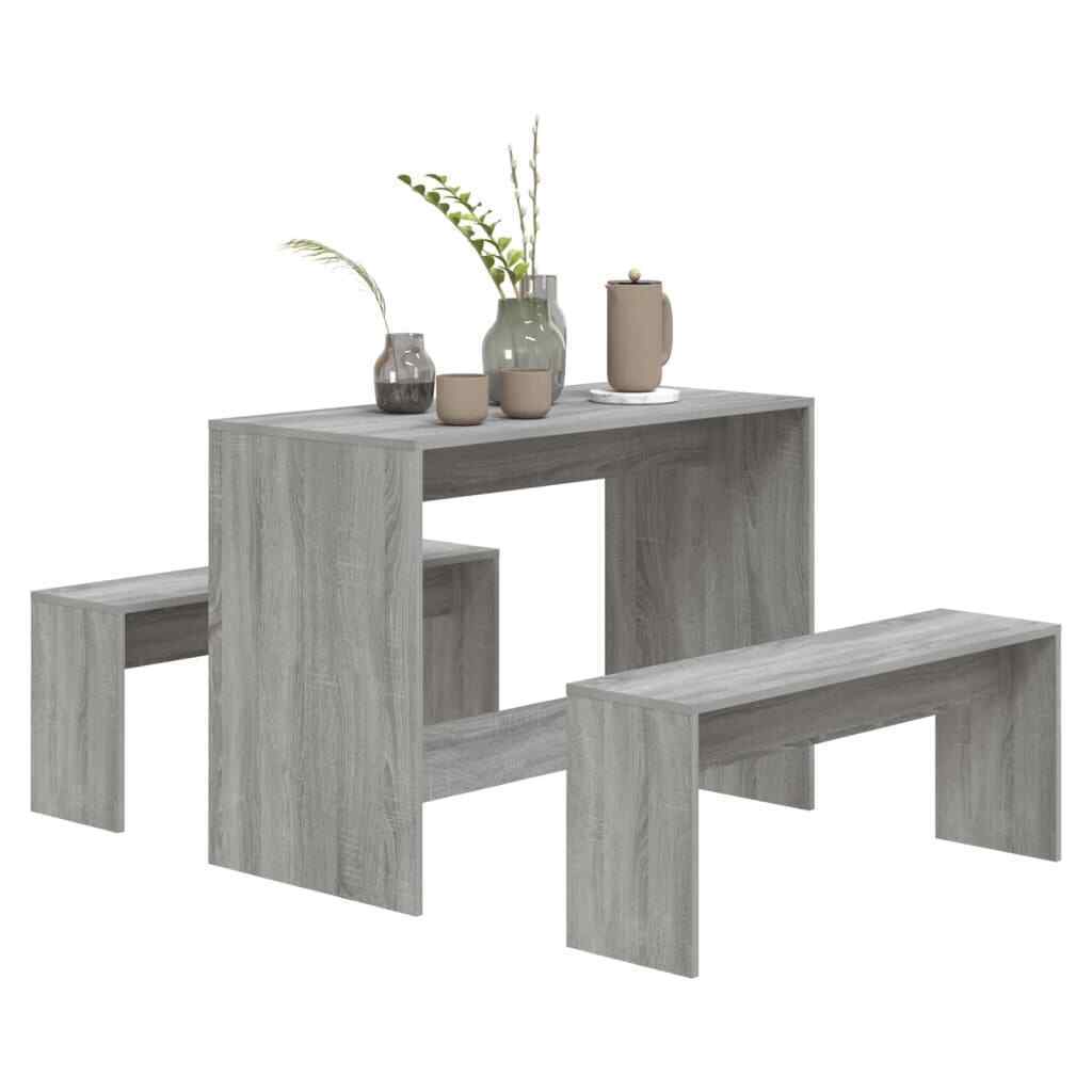 Grey Modern Dining Table 2 Bench Seat Space Saving Kitchen Furniture Set Chairs