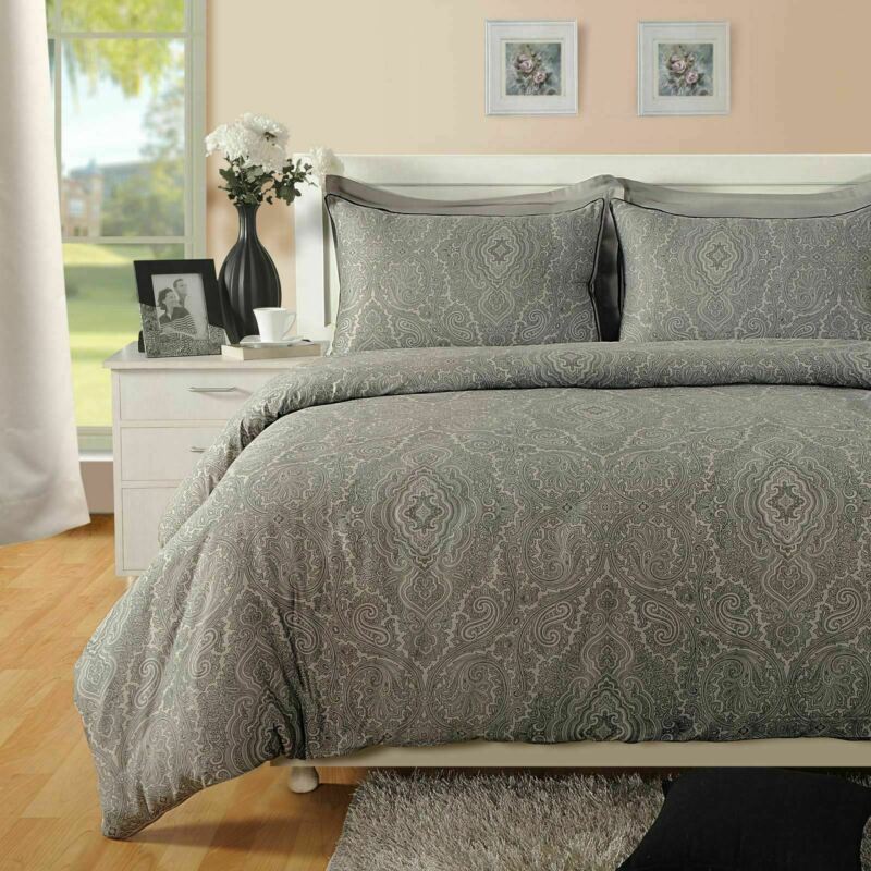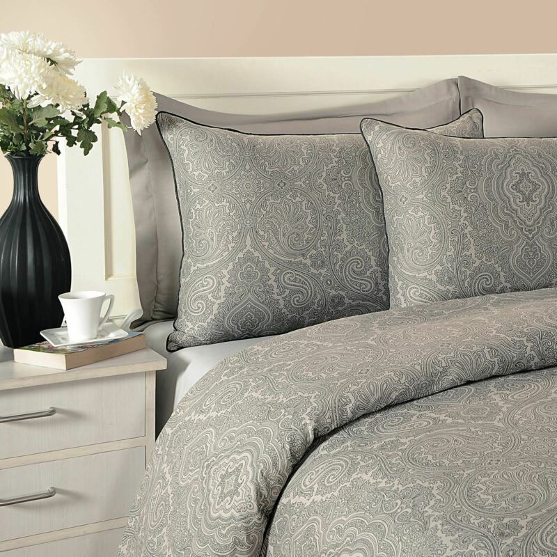 Grey Paisley Hotel Quality Duvet Cover Set 400TC Cotton King/Super King Bed Set