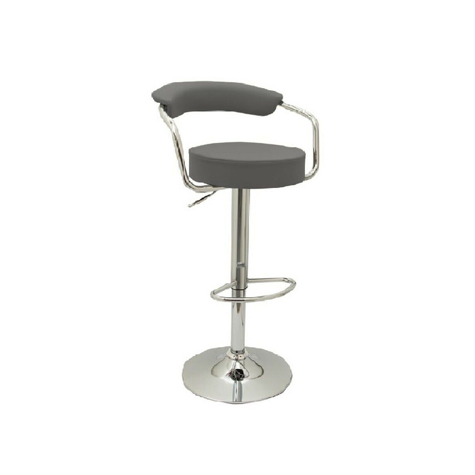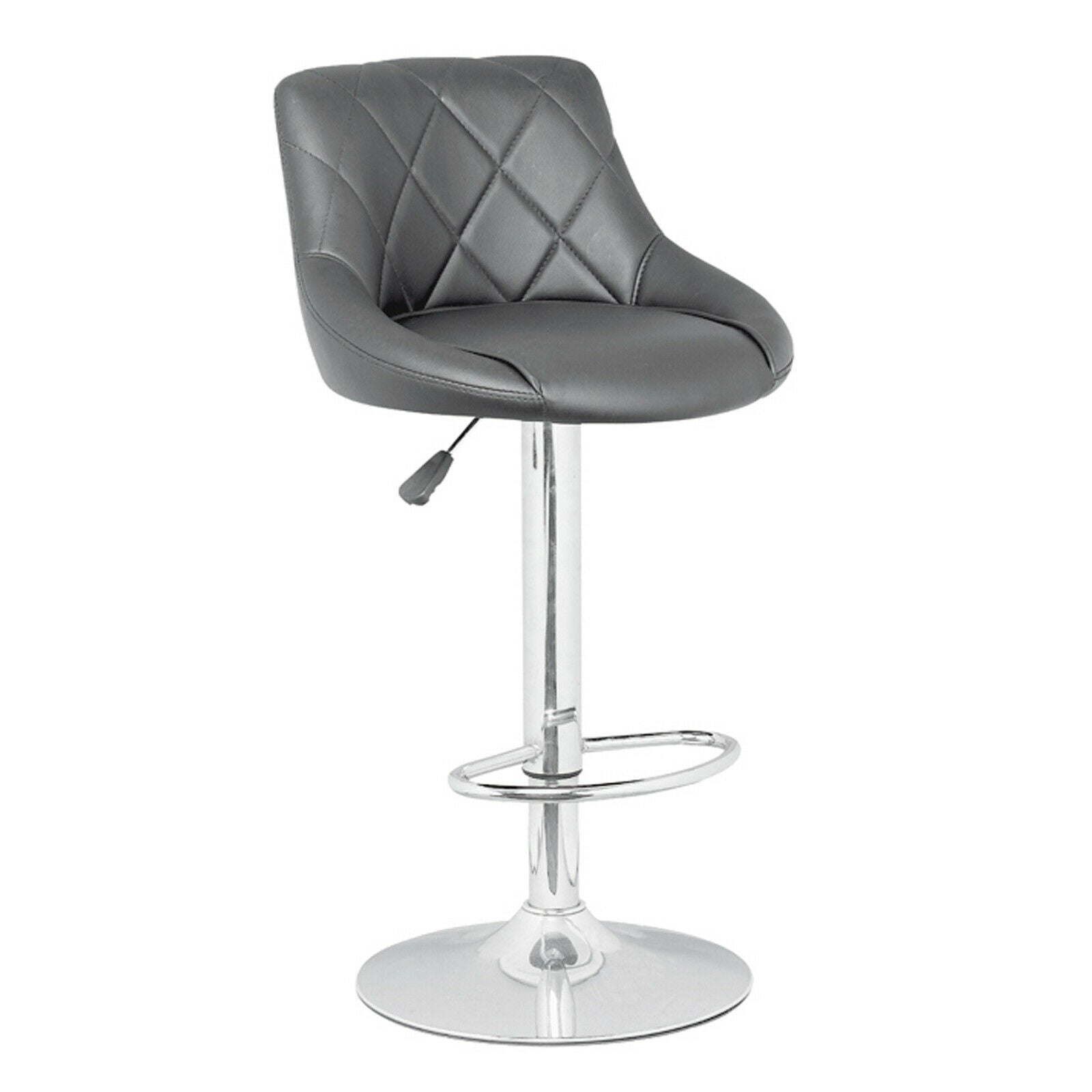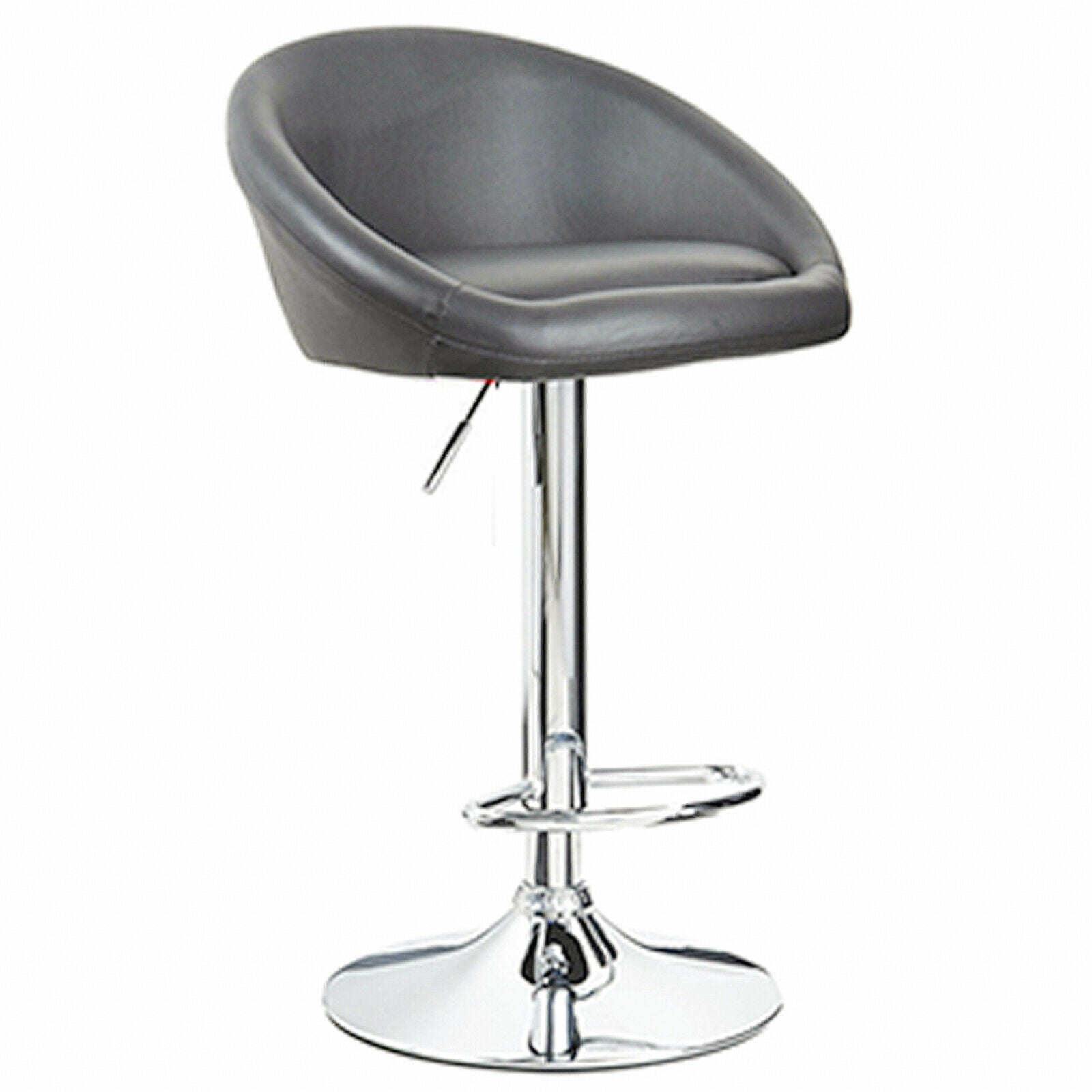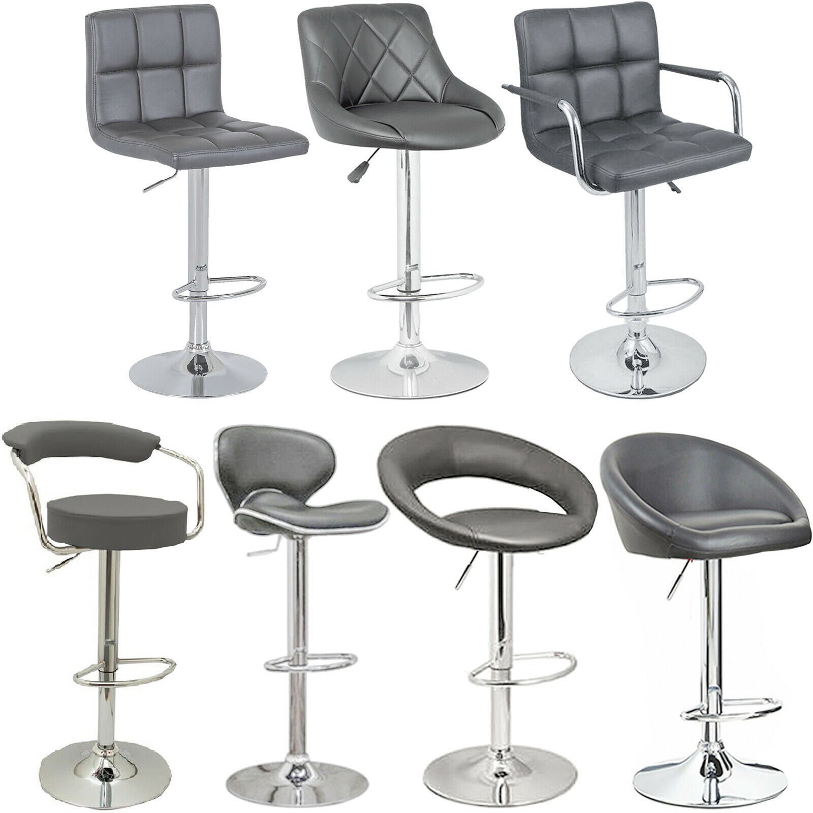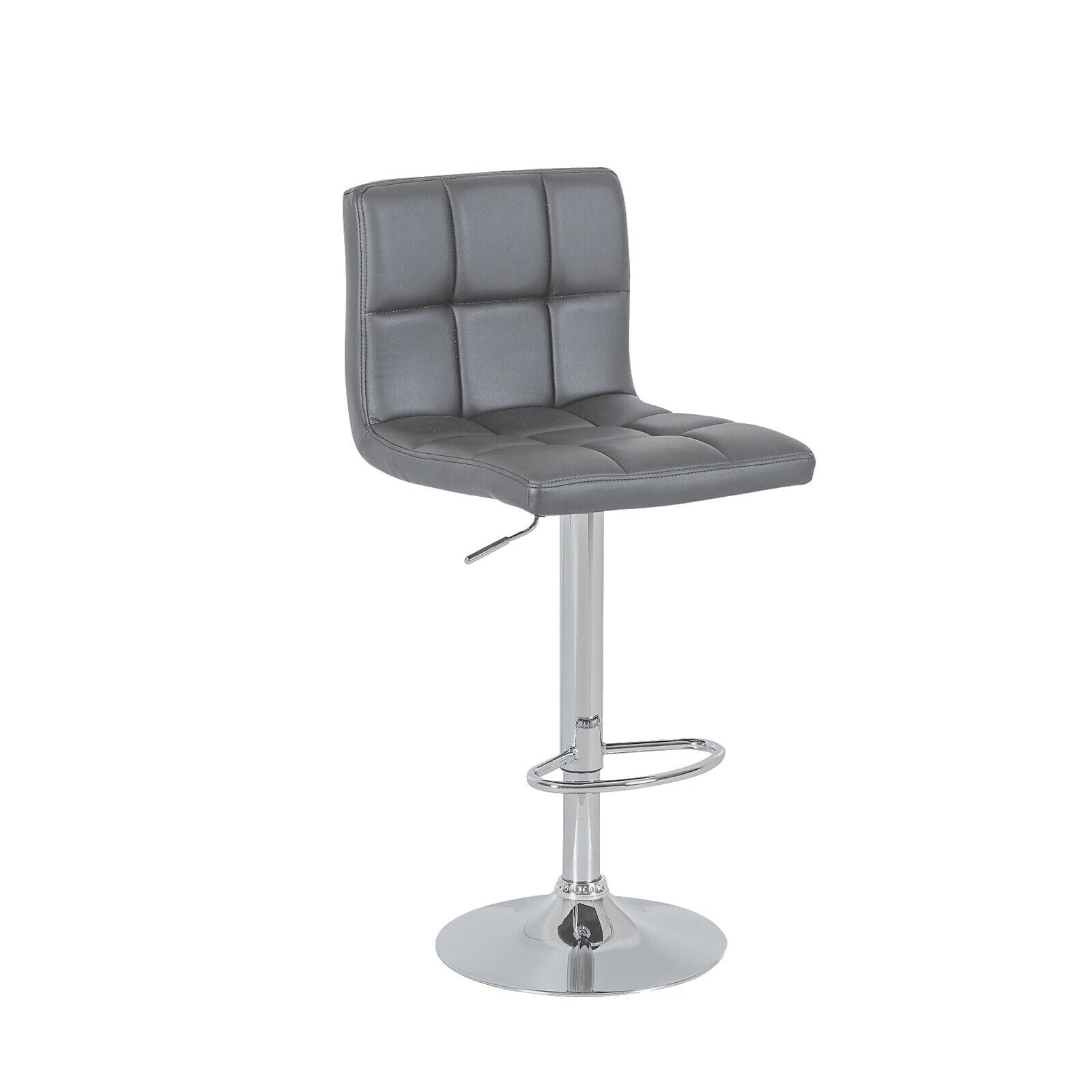 GREY PU Leather Breakfast Bar Stool Swivel Kitchen Chrome Metal Base Gas Lift