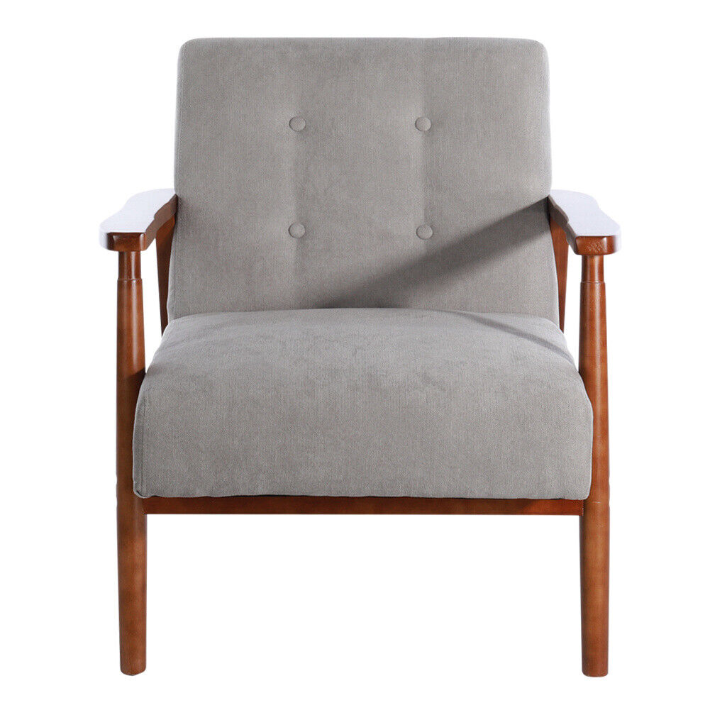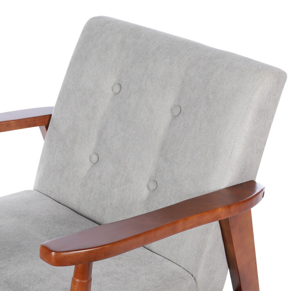 Grey Sturdy Wooden Frame Upholstered Armchair Seat Lounge Tub Chair Retro Fabric