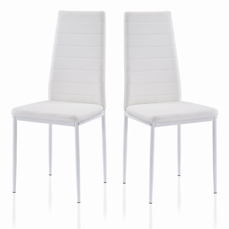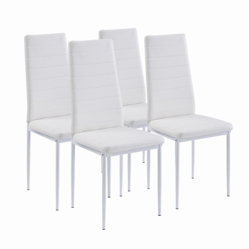 Grey Tempered Glass Dining Table&4x White Faux Leather Dining Chairs Dining Room