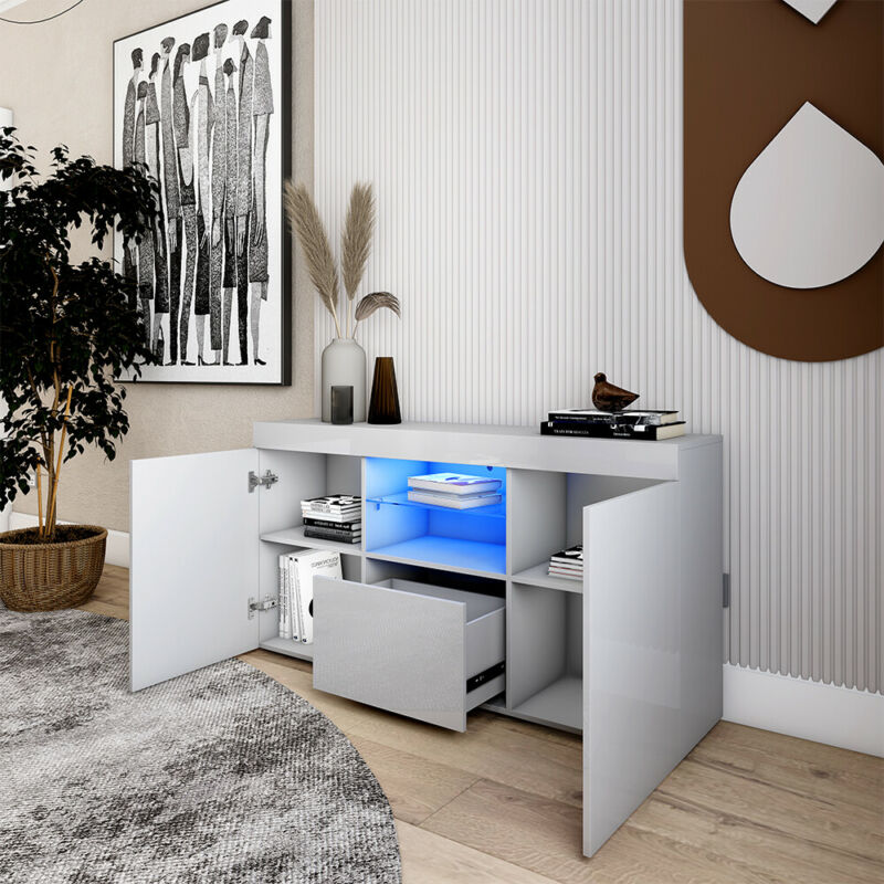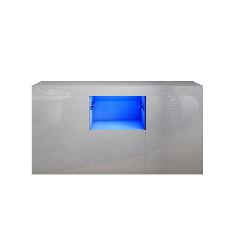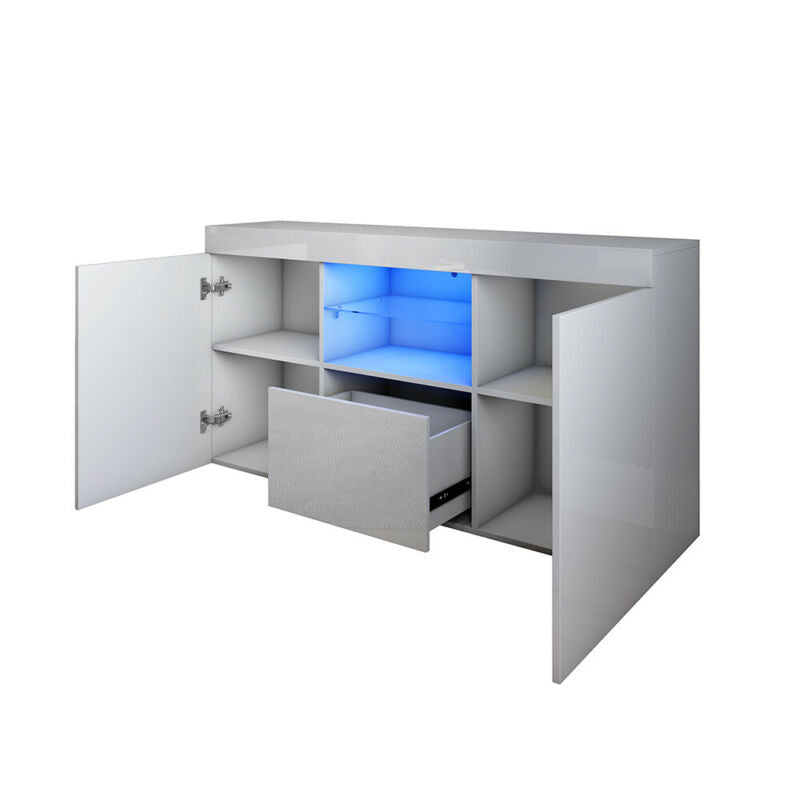 Grey TV Unit Cabinet Stand Sideboard Cupboard High Gloss Doors Drawers LED Light