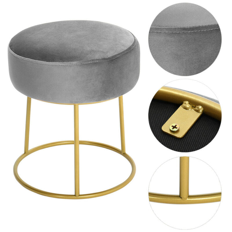 Grey Velvet Fabric Stool Dressing Table Seat Vanity Footstool Round Dining Chair