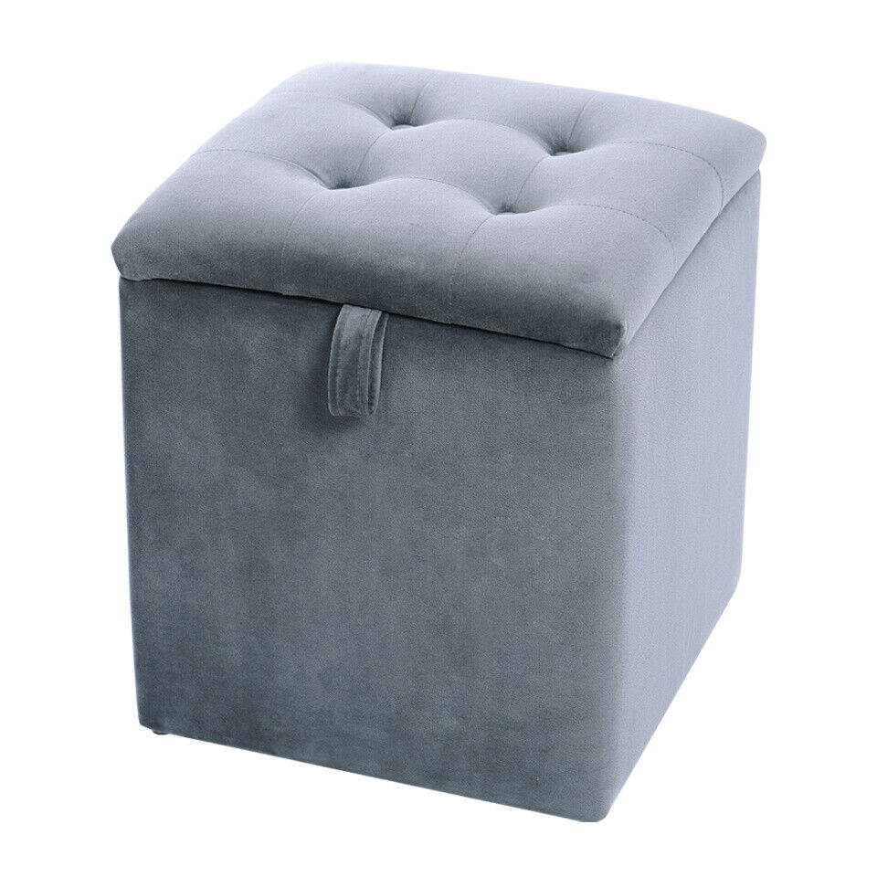GREY Velvet Ottoman Storage Stool Footstool Box Sofa Chair Footrest Piano Seat
