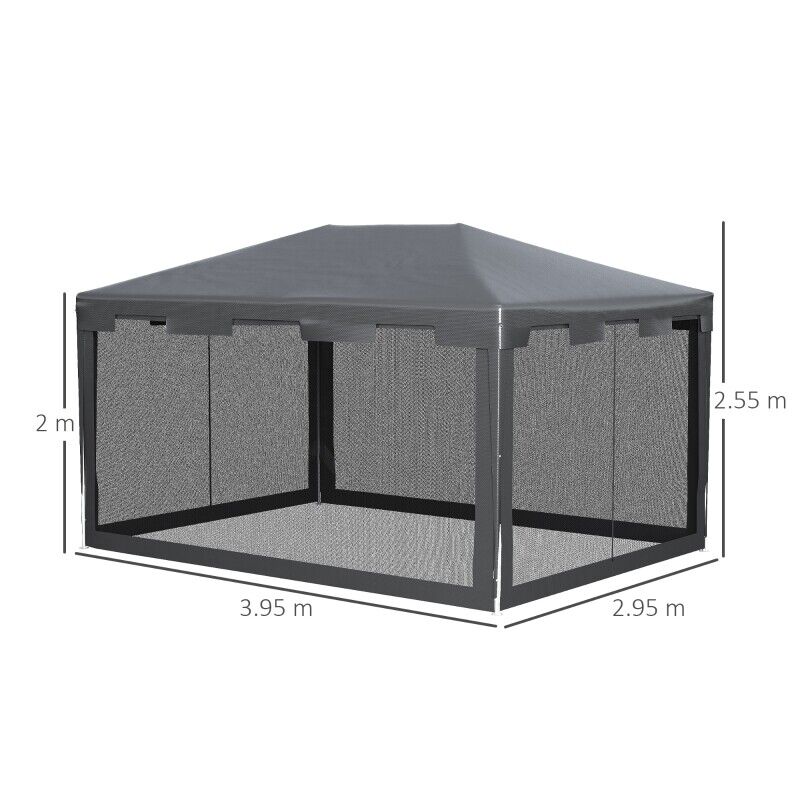 Grey Waterproof Gazebo 4x3m Mosquito Net Garden Patio Marquee Party Tent Camping