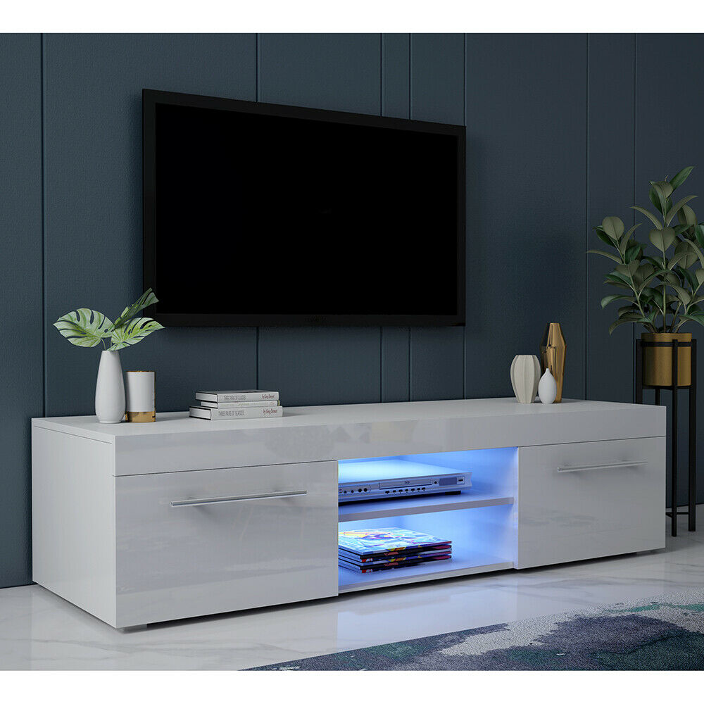 Grey/White Large TV Unit Stand Cabinet High Gloss Drawers Storage LED Sideboard