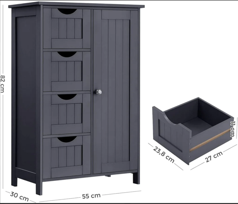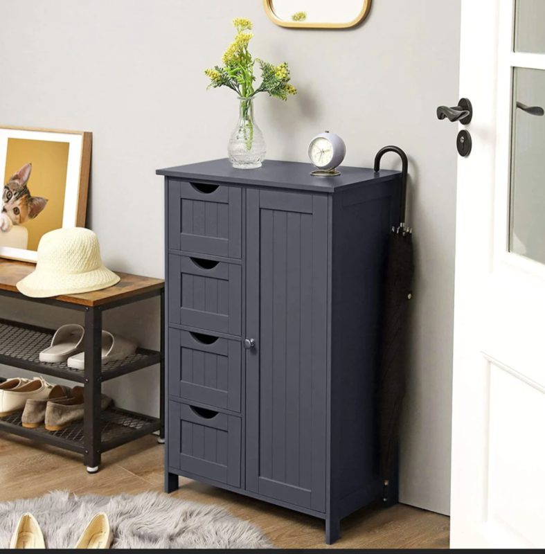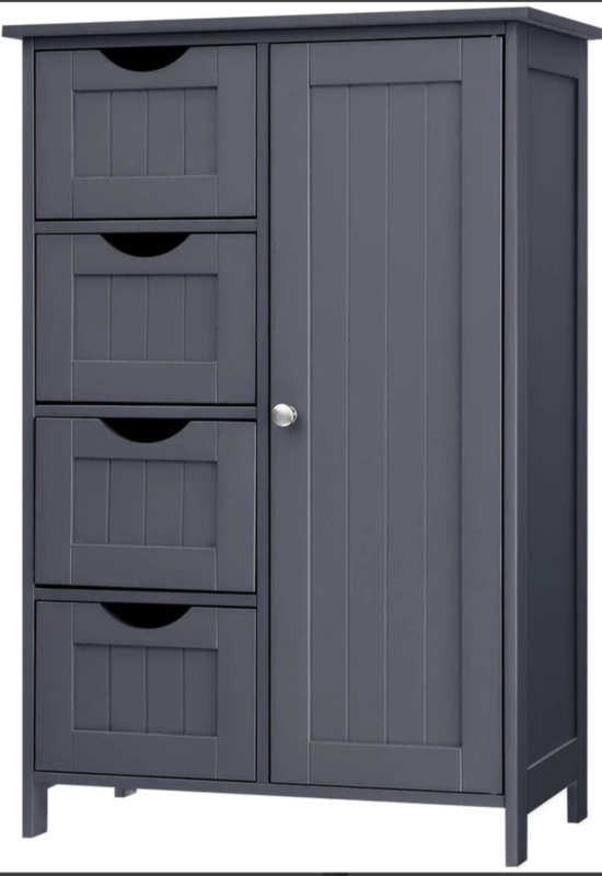 Grey Wooden Floor Standing Bathroom Bedroom Cabinet Cupboard Shelf Door Drawers