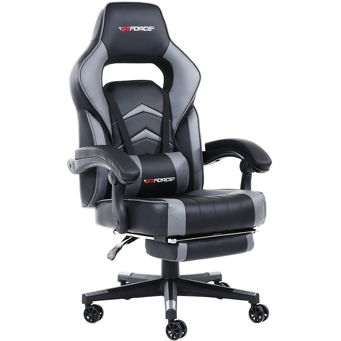 Designed to offer a combination of luxurious comfort and high-performance style. The GTFORCE Turbo Racing Office Chair provides outstanding lumbar support because its design encompasses the traditional deep-sided `body-hugging' back, adjustable lumbar cushion and extendable footrest.