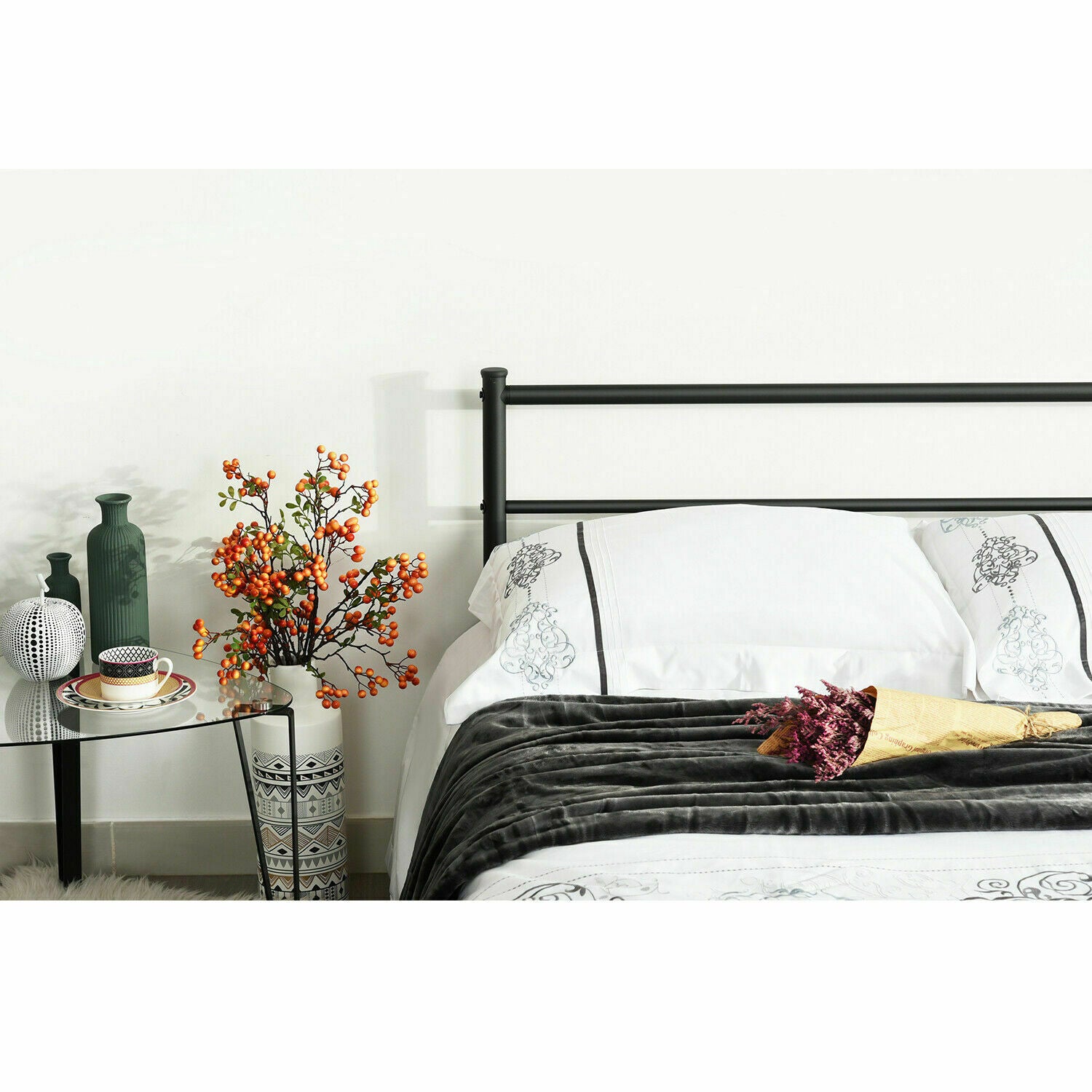 H.J Wedoo 3FT/4FT6 Single Bed Frame Double Bed Frame Black Minimalist Style New