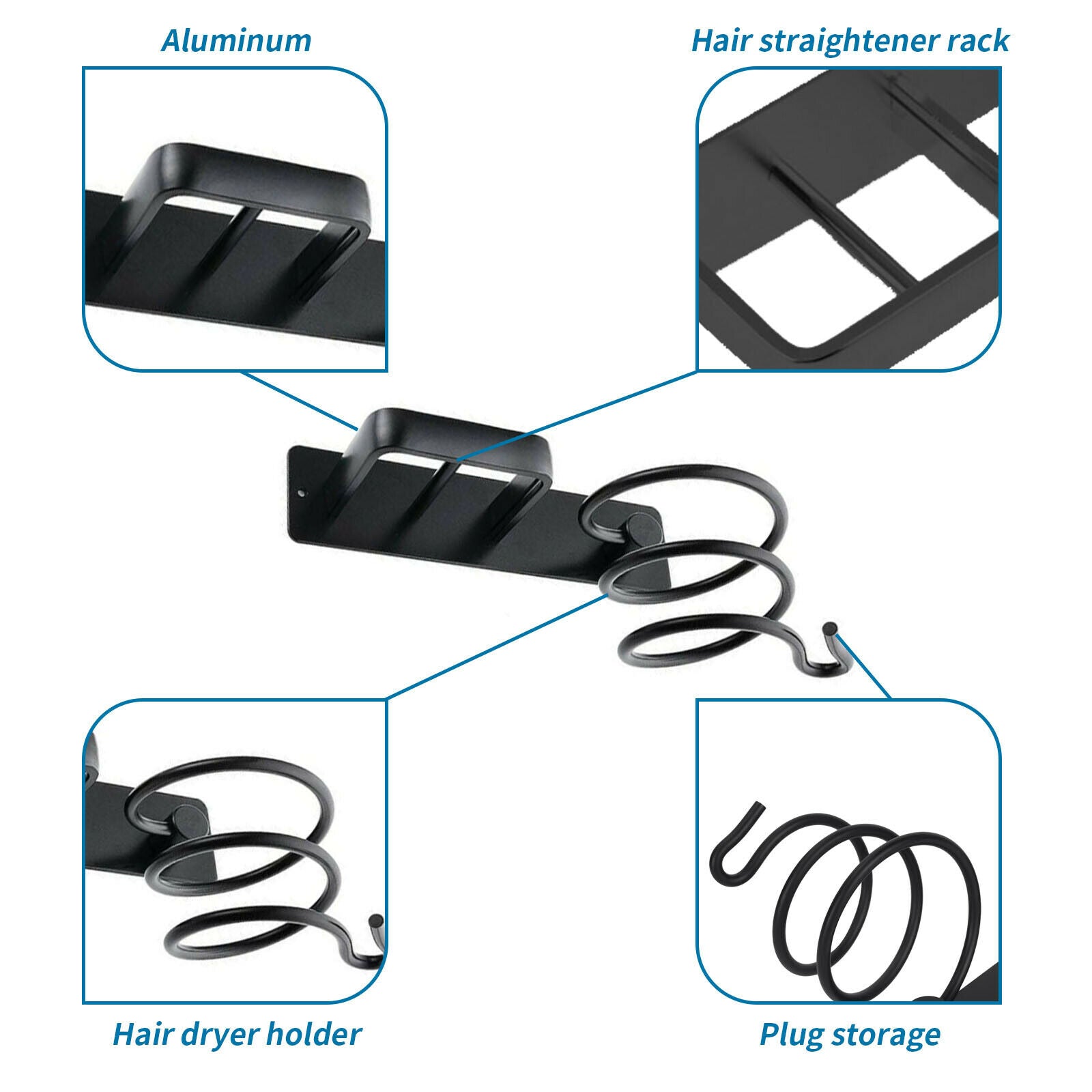 Hair Straightener Hair Dryer Holder Storage Aluminum Wall Mounted Rack Spiral UK