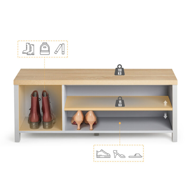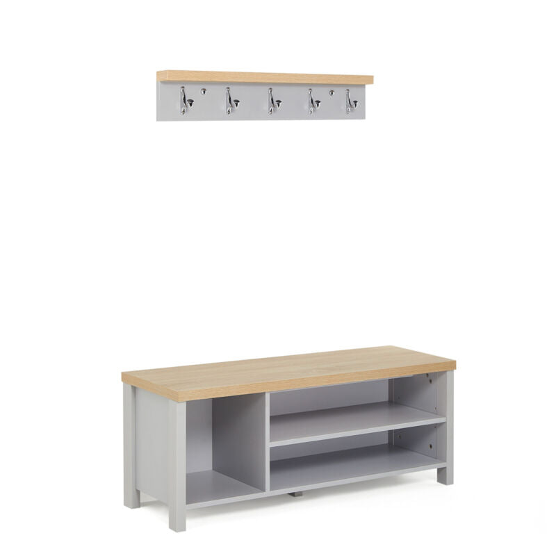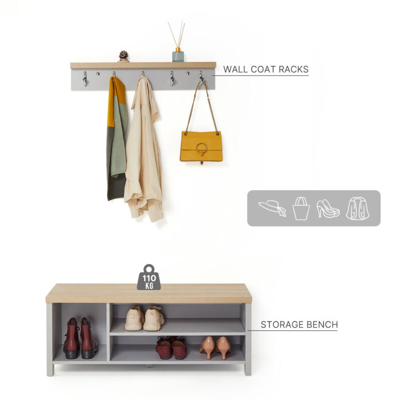 Hallway Furniture Set Shoe Bench Storage Cabinet Coat Rack with 5 Hooks Entryway