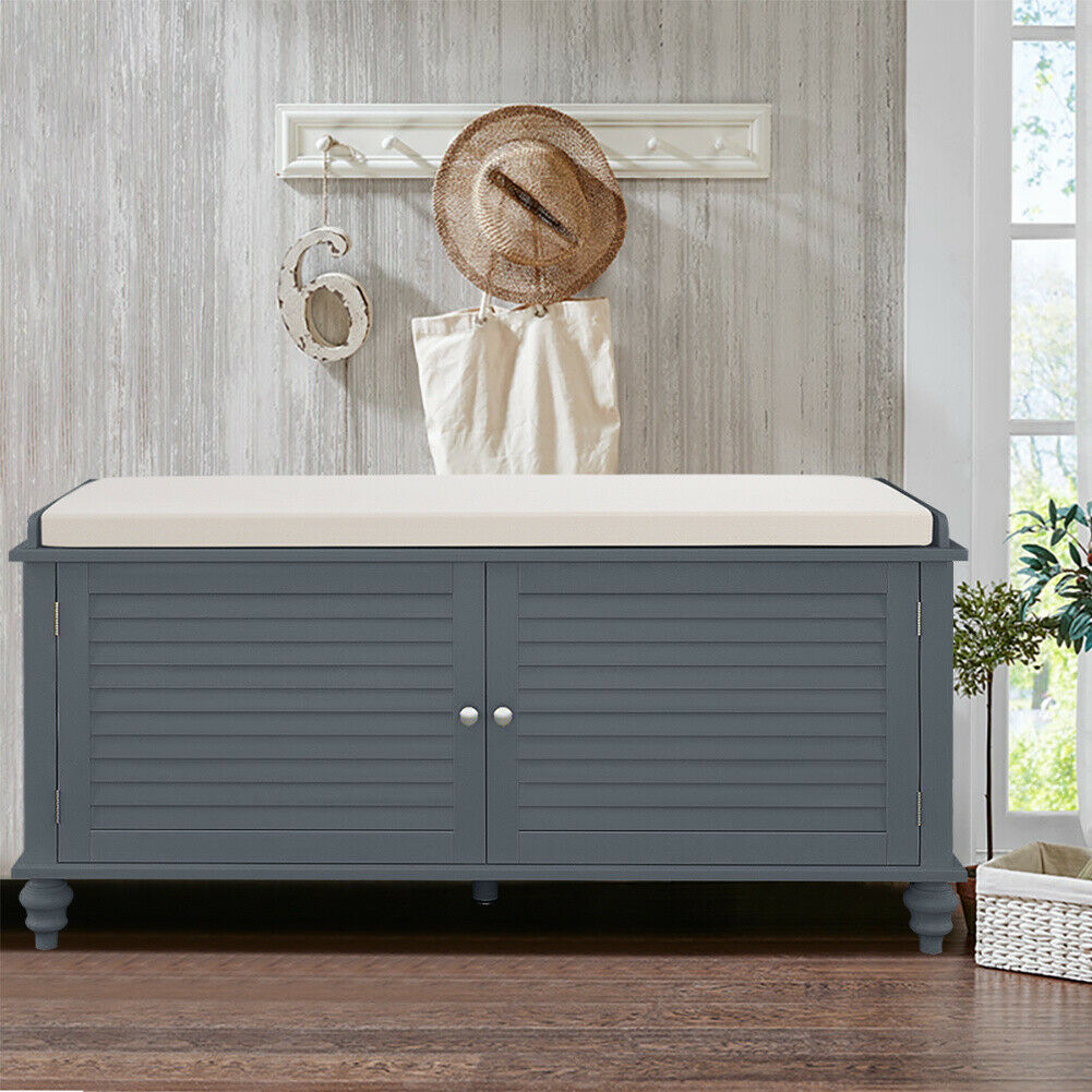 Hallway Storage Shoe Bench Seat Cabinet 2 Door Cupboard Ottoman Window Seat Wood