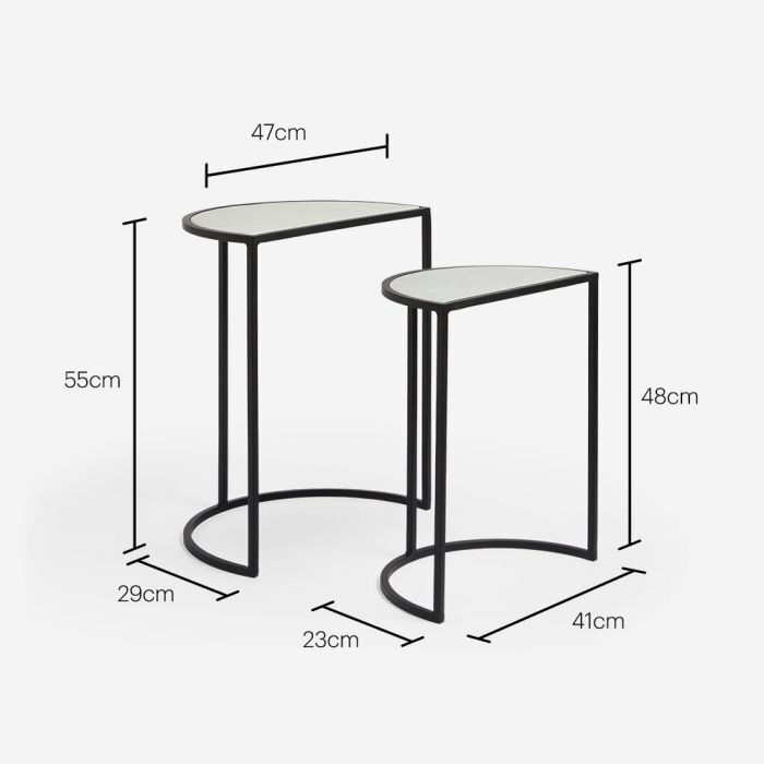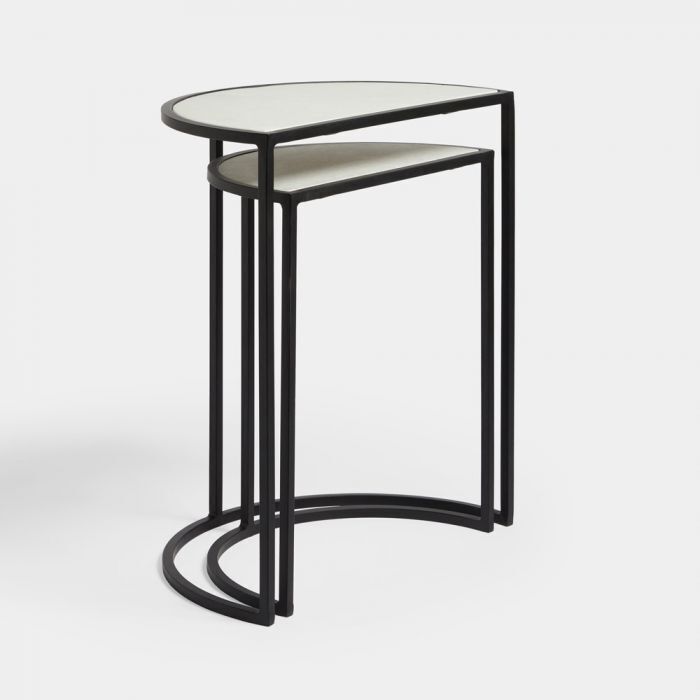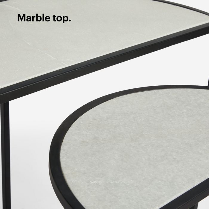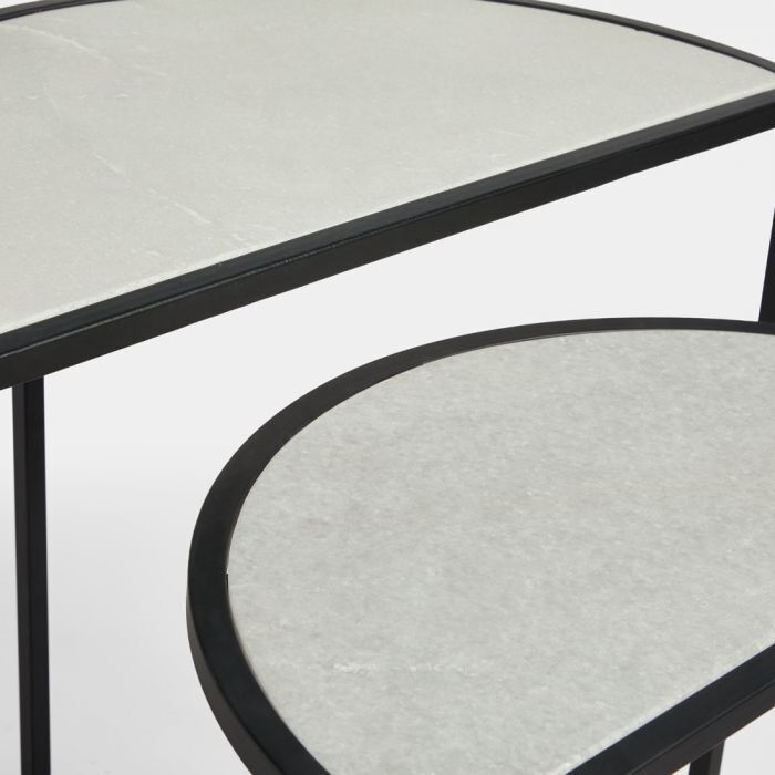 Set of 2 Marble Semi Circle Tables Dining Living room side Home Decor