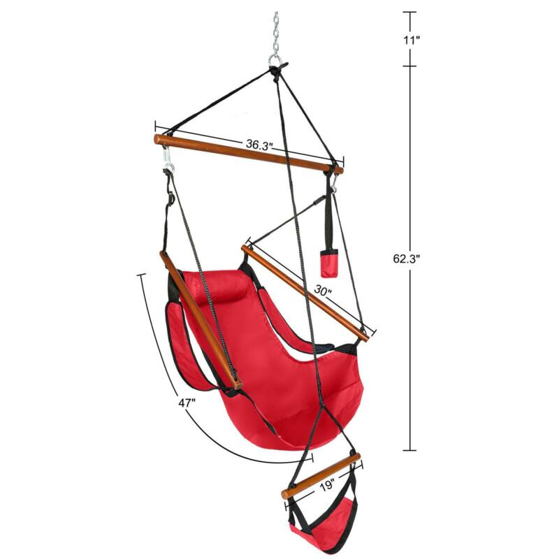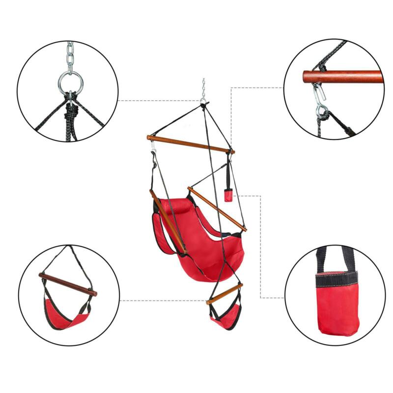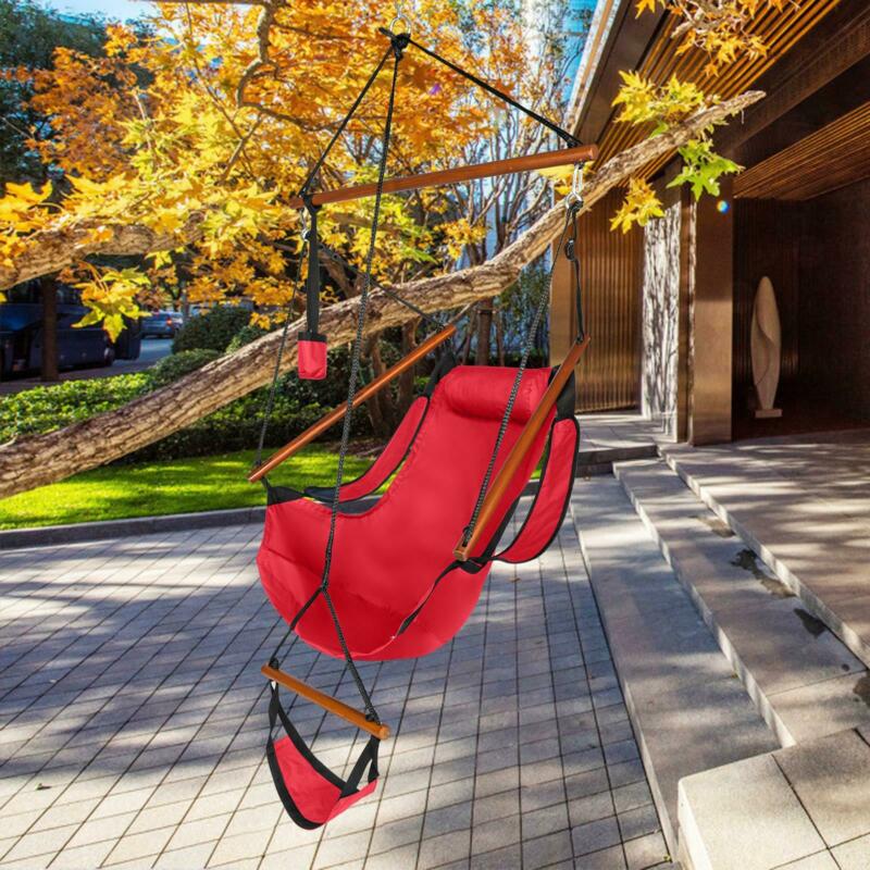 Hammock Hanging Chair Air Deluxe Sky Swing Outdoor/Indoor Chair Solid Wood Red