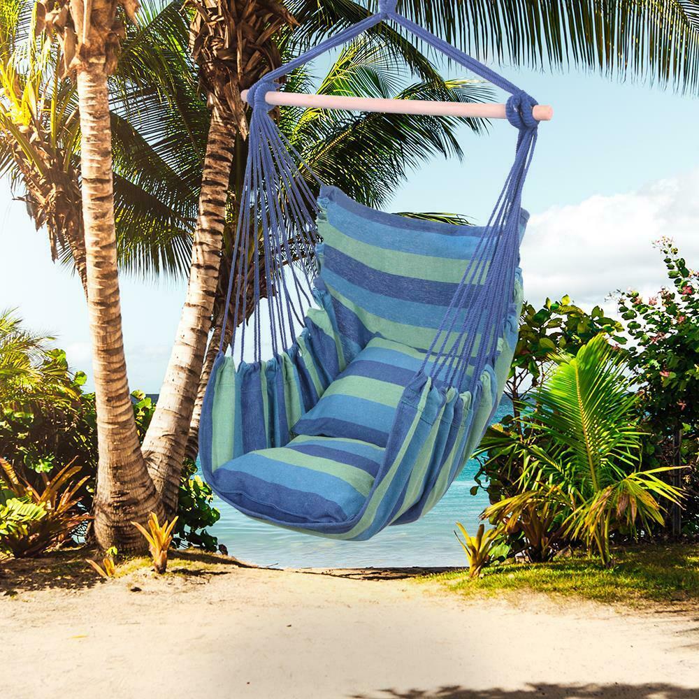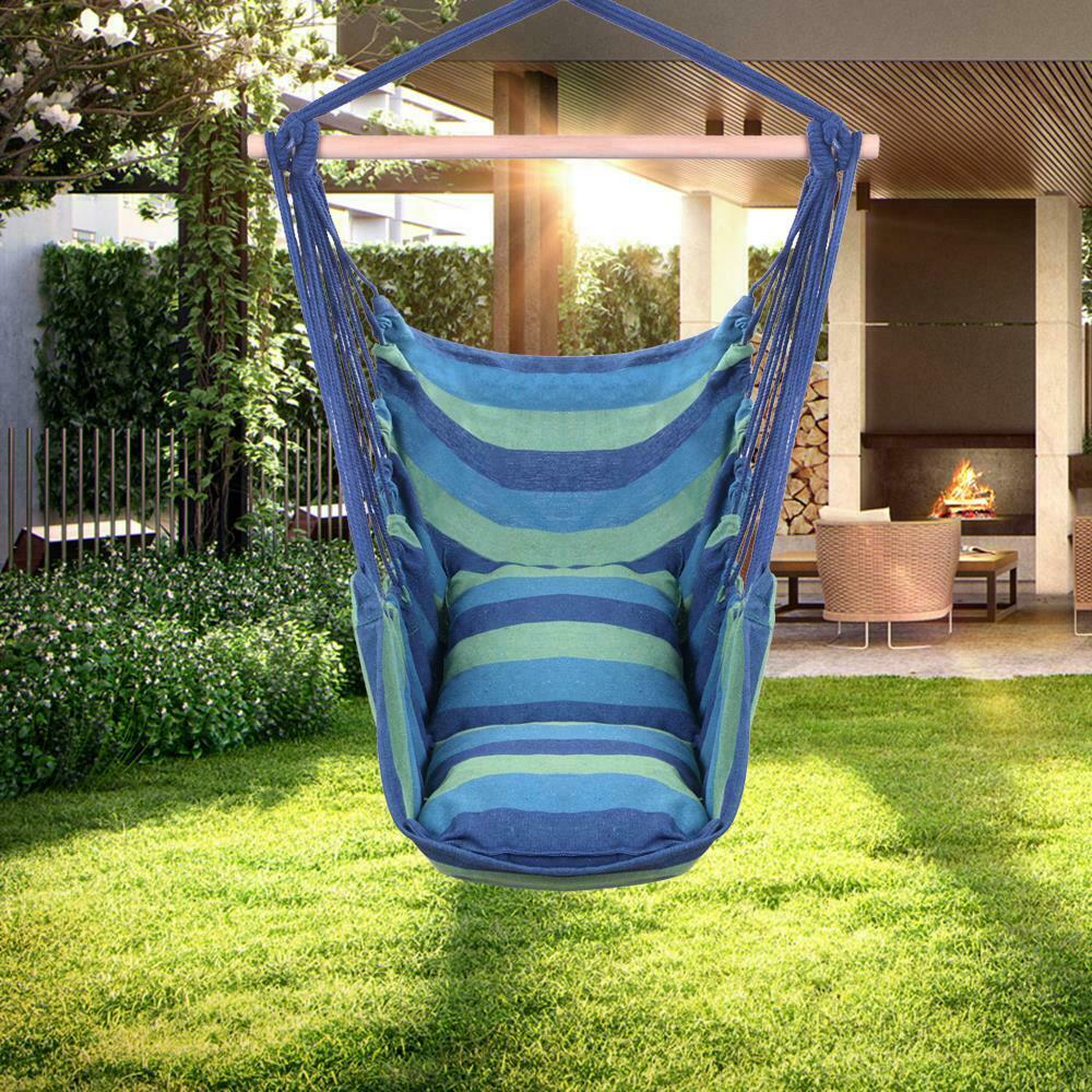 Hammock Hanging Rope Cotton Canvas Chair Swing Seat Patio Camping /w 2 Pillows
