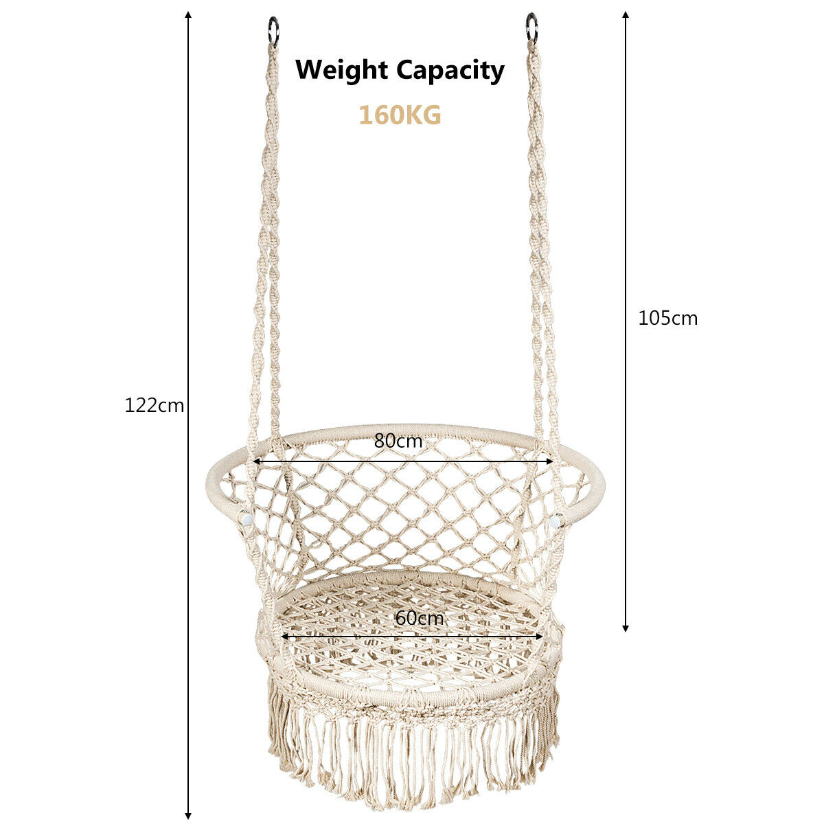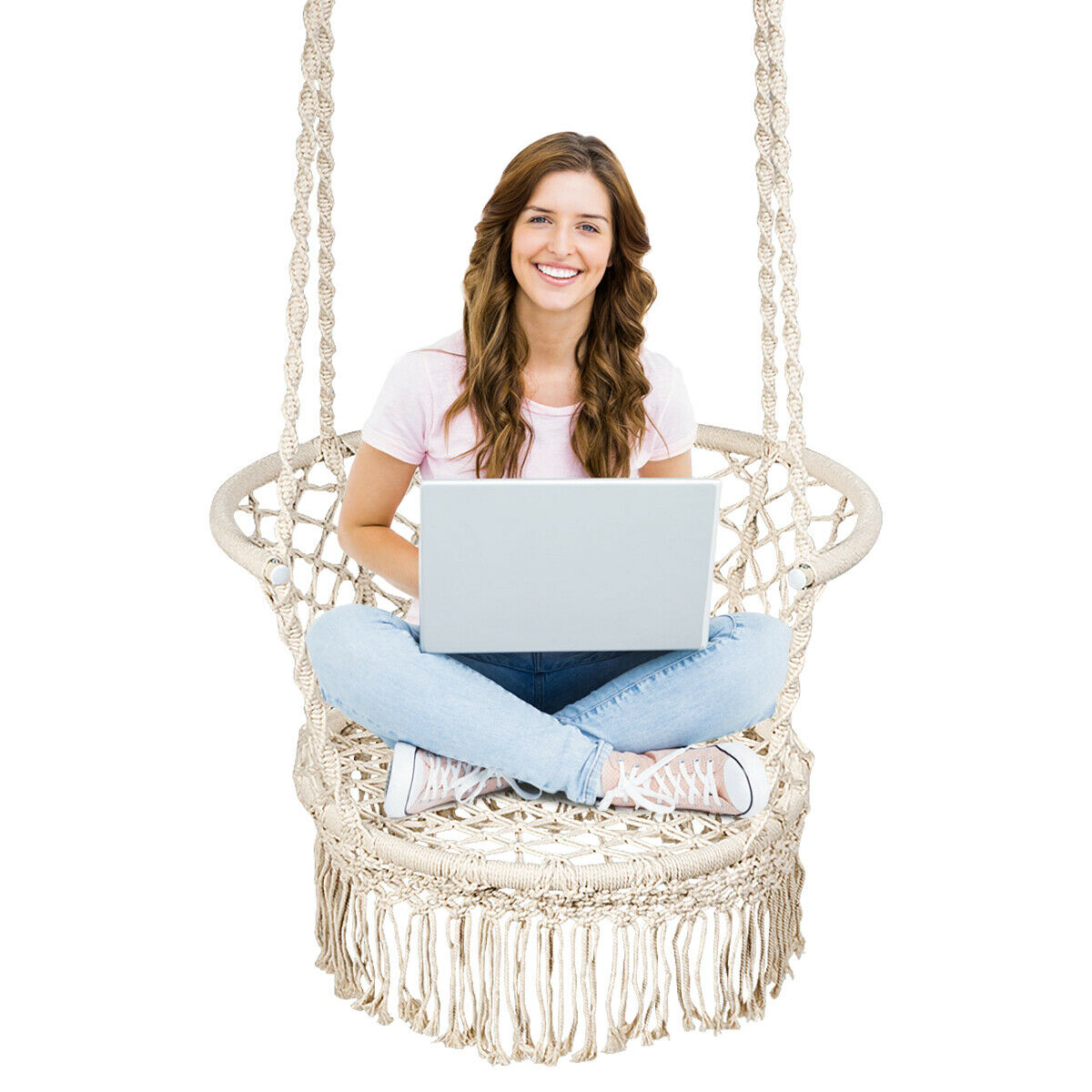 Hammock Macrame Swing Chair Hanging Cotton Rope Seat W/ Tassels Indoor & Outdoor