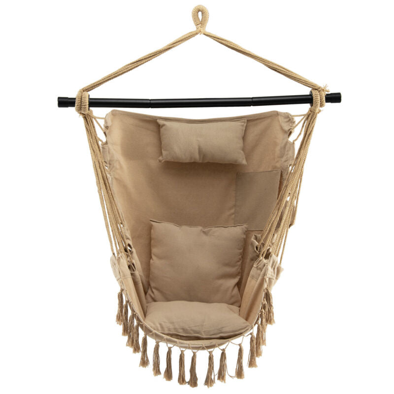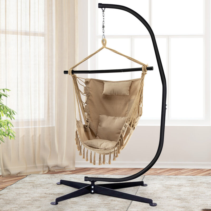 Hammock Macrame Swing Chair Home Garden Hanging Rope Seat with Pillow & Cushions
