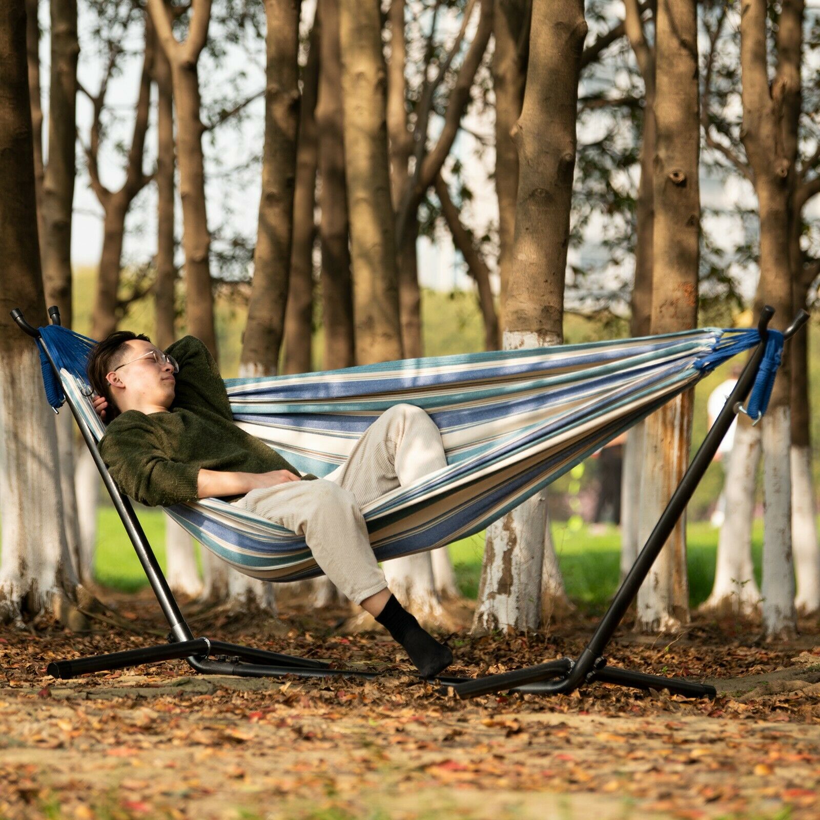 Hammock With Frame Height Adjustable Suitable For Outdoor Garden Patio Relax UK