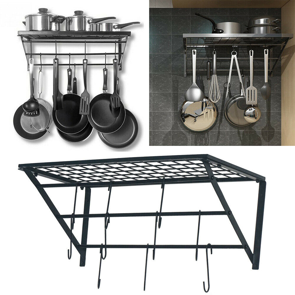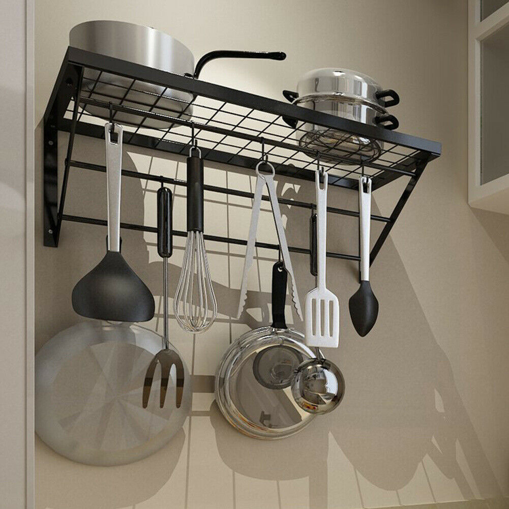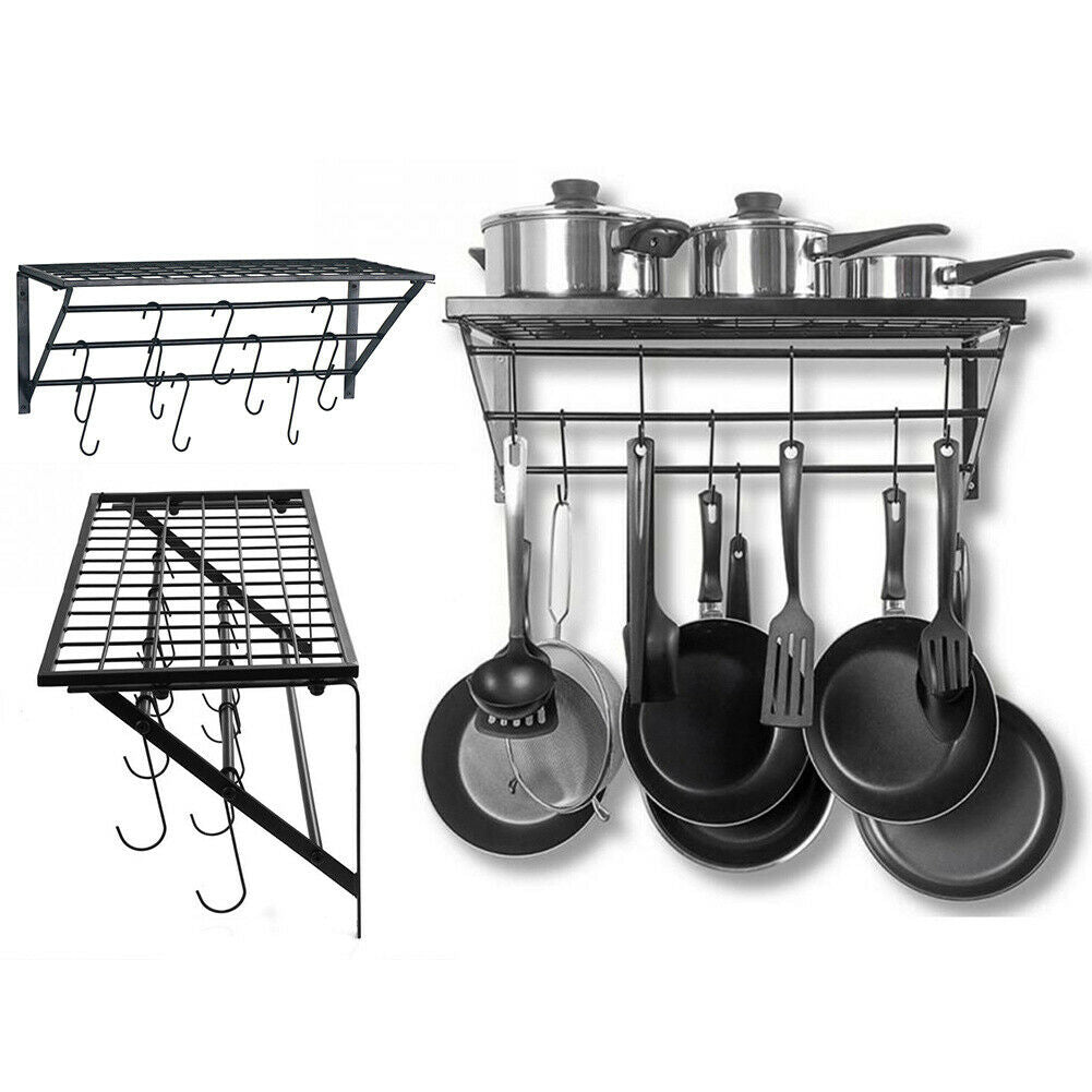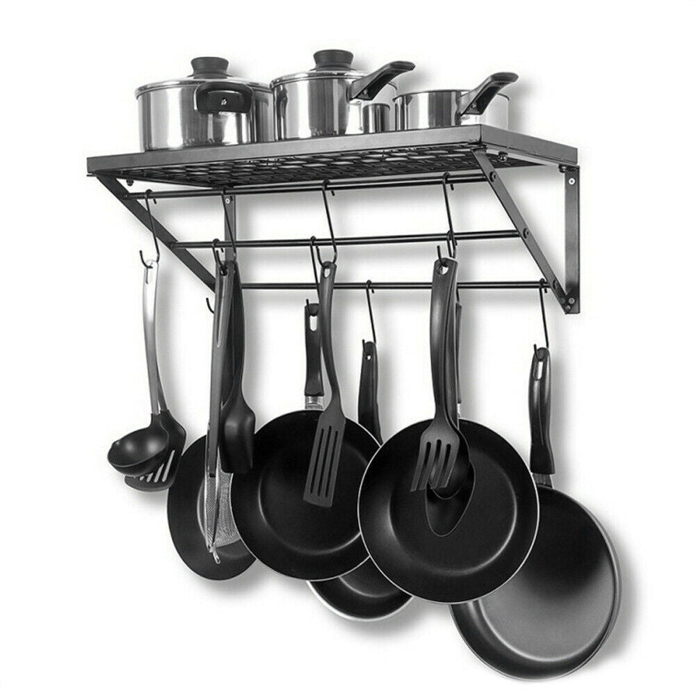 Hanging Kitchen Pot Pan Rack Storage Shelf Kitchenware Holder Hook Wall Mounted