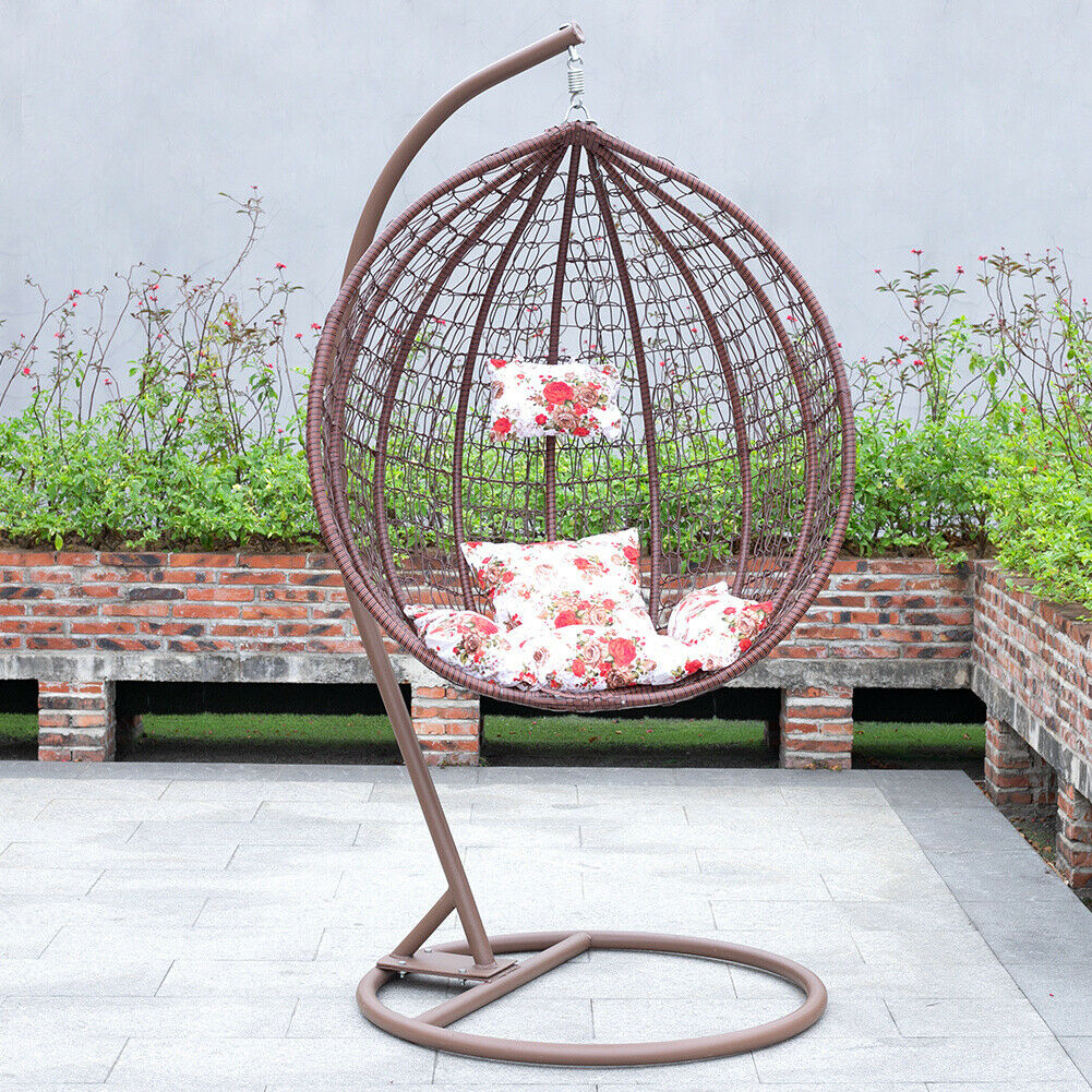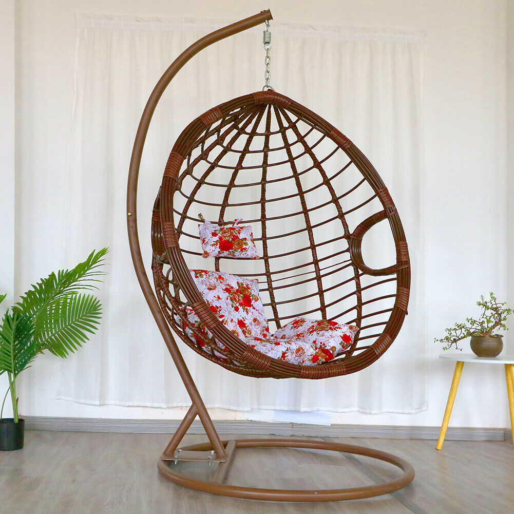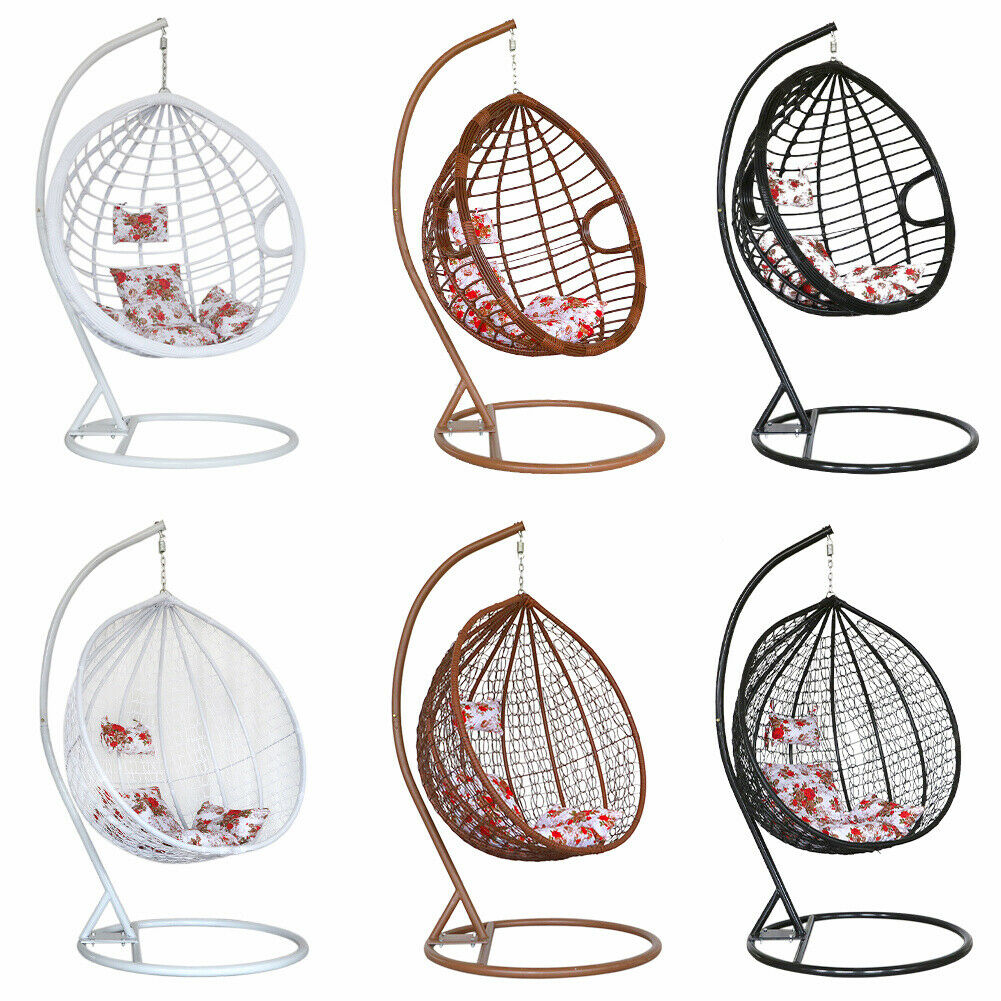 Hanging Swing Rattan Chair Patio Garden Egg Chair With Cushion Indoor Outdoor