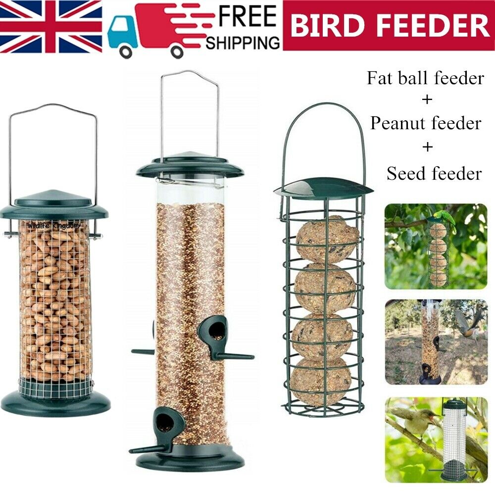 Hanging Wild Bird Feeder set of 3 Seed Nut Fat Ball Garden Feeding Station UK