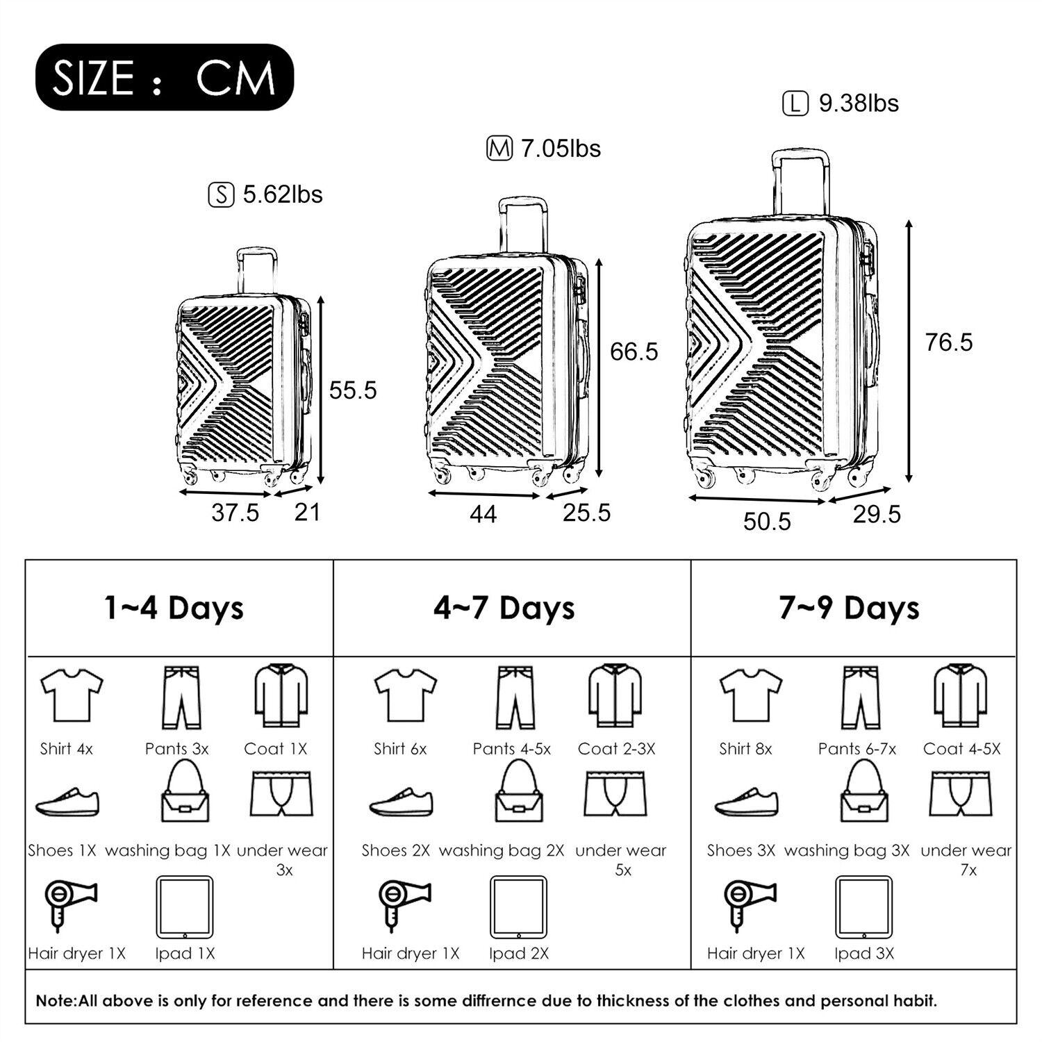 Hard Shell Cabin Large Suitcase 3x Set 4 Wheels Luggage Trolley Case Lightweight
